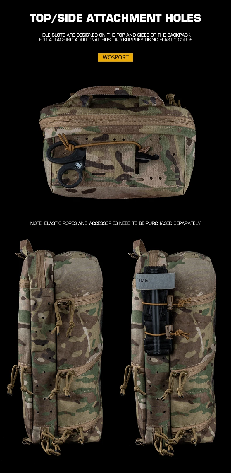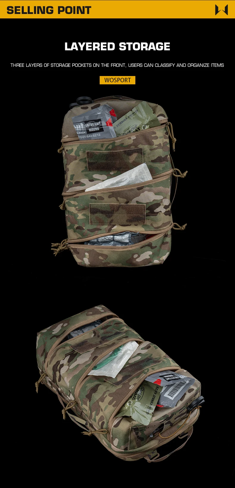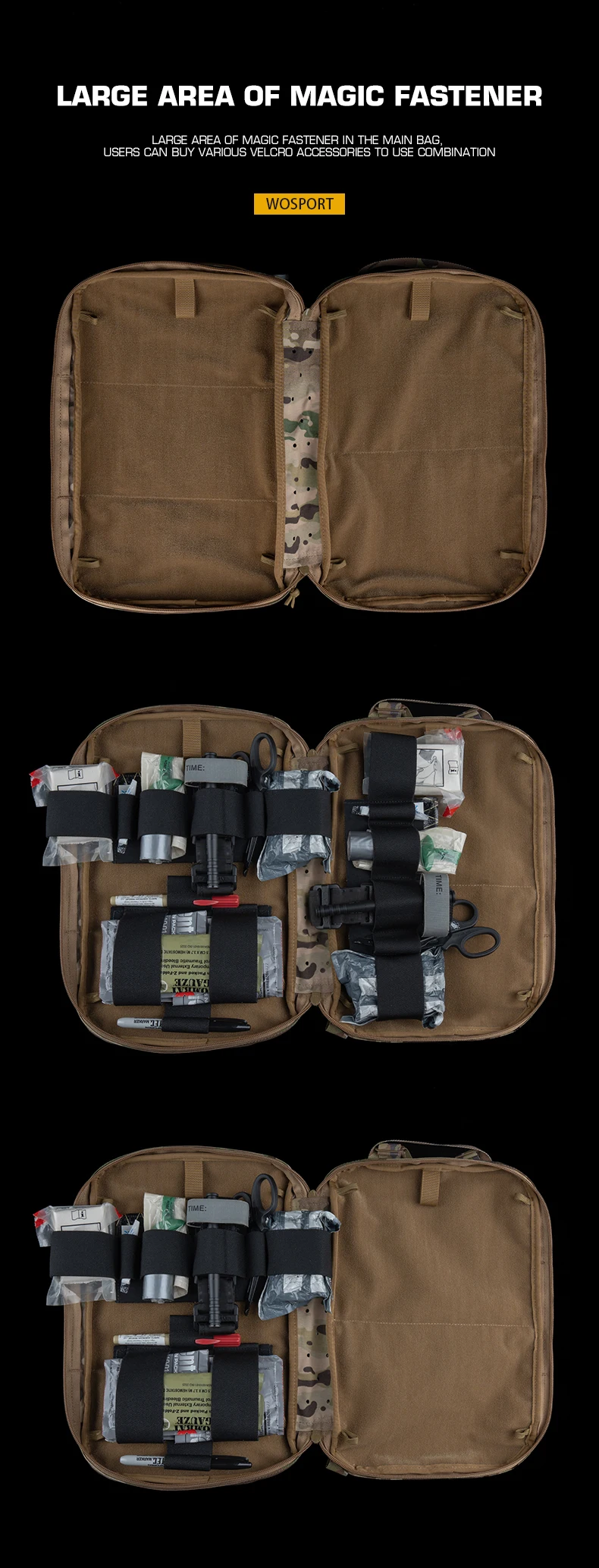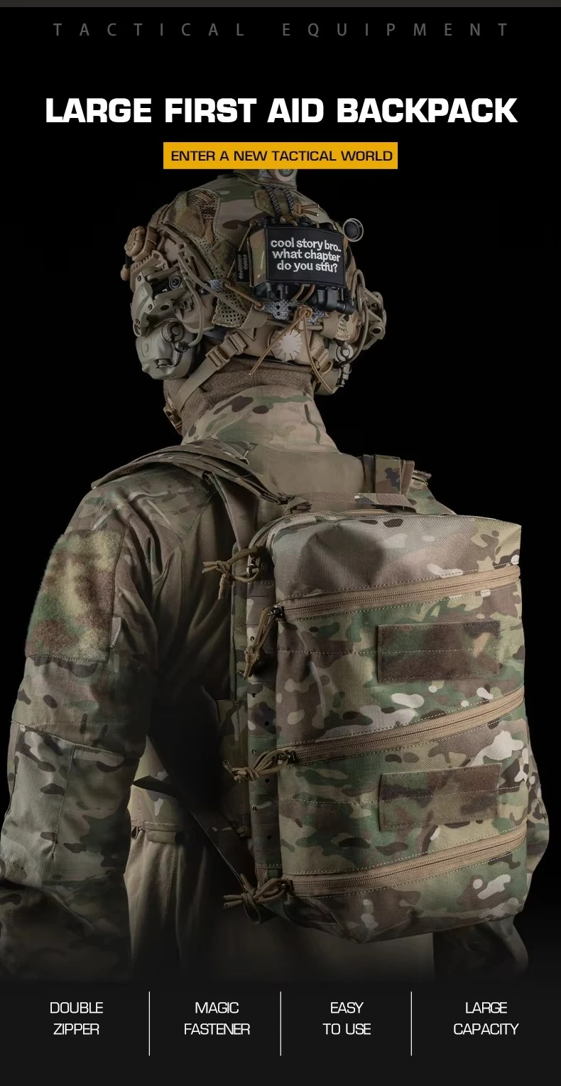 Mochila de primeros auxilios grande con doble cremallera, mochila médica de almacenamiento en capas con cierre mágico