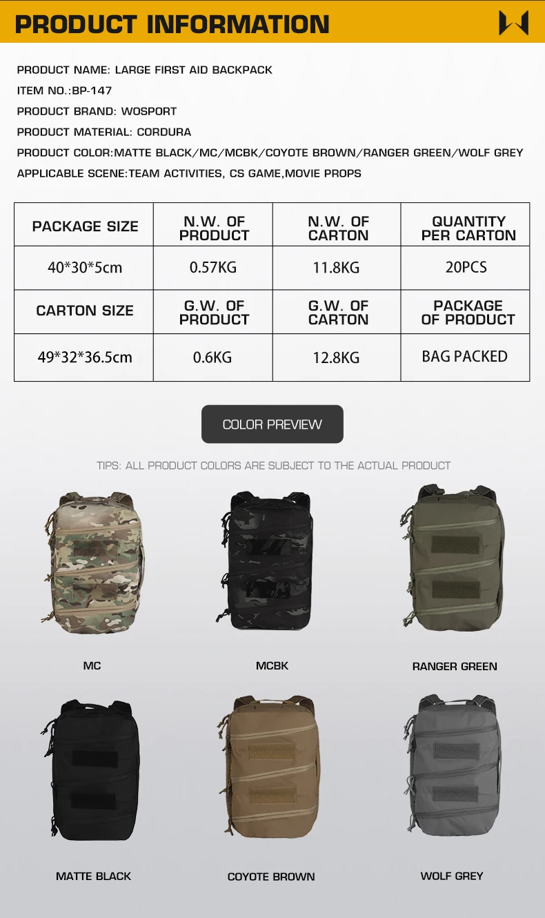 Nombre del producto: Mochila grande de primeros auxilios