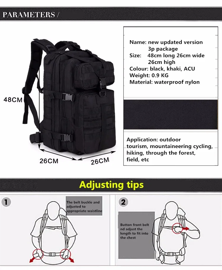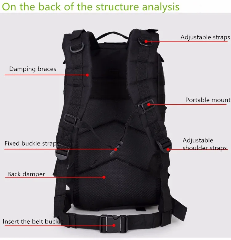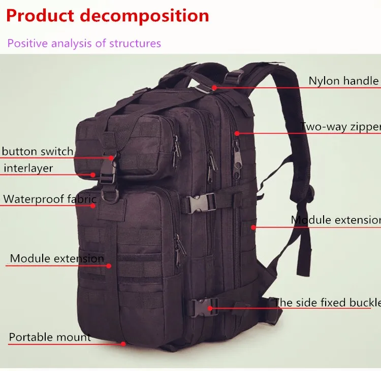 Mochila táctica para hombre, bolsa de viaje de nailon impermeable, Molle, para escalada, senderismo, caza, pequeña bolsa de viaje con Velcro, 35L