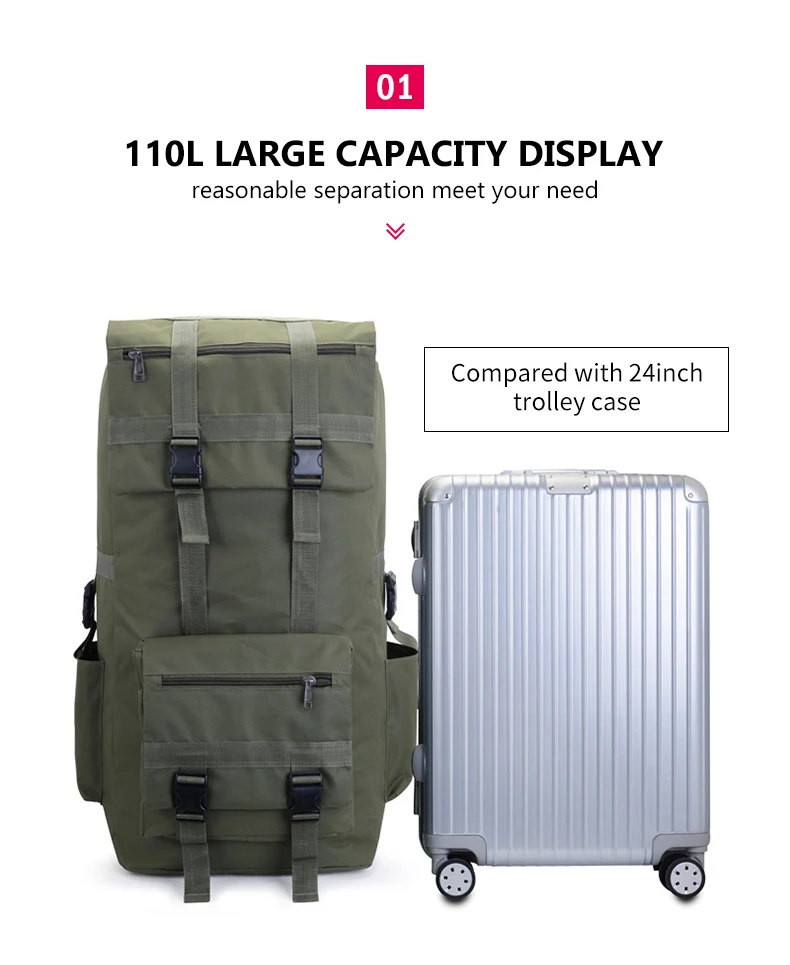 Mochila táctica para hombre de gran capacidad de 110L, senderismo al aire libre, senderismo, Camping, bolsa de viaje, mochila