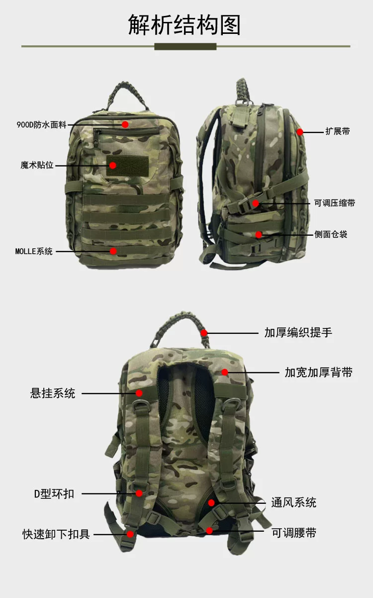Mochila táctica impermeable para viajes al aire libre, mochila de transporte de carga MOLLE