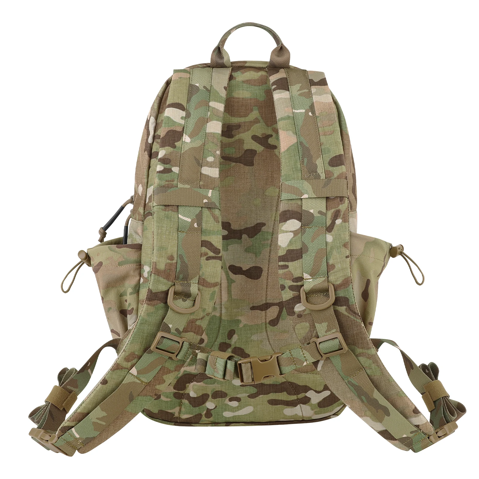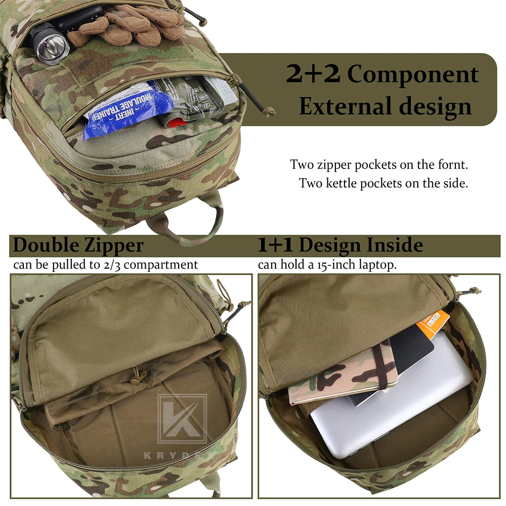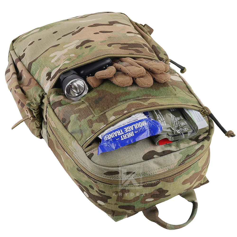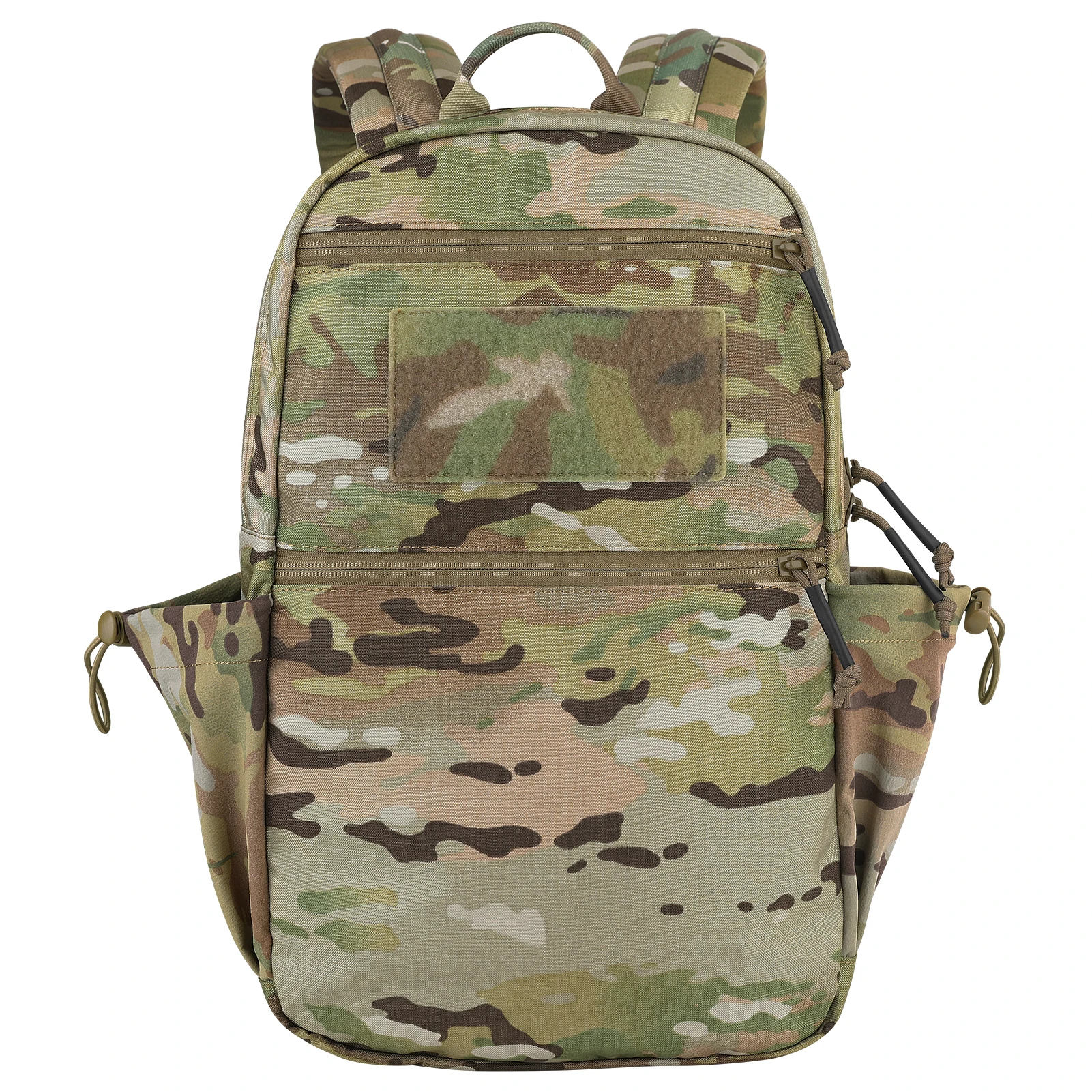 * Cremalleras YKK para fácil acceso al compartimento principal y dos bolsillos externos.Área de bucle frontal para fijar parches