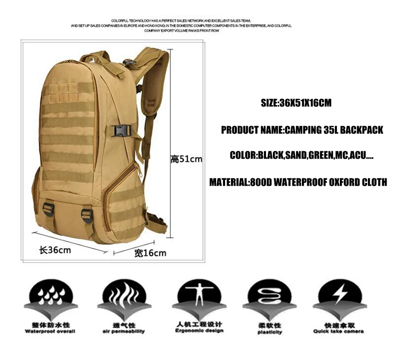 Mochila táctica militar de 35L, bolsa de viaje para exteriores, escalada, montañismo, deporte, Camping, senderismo