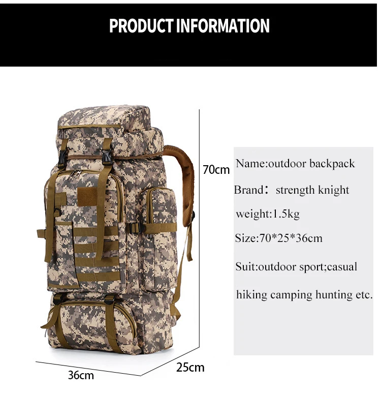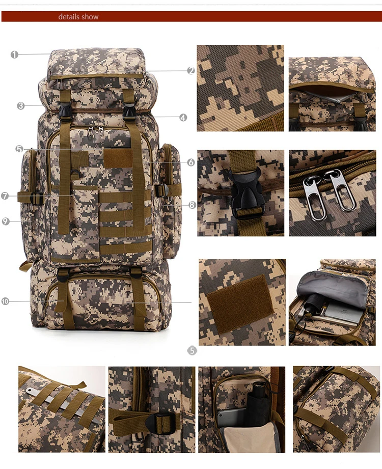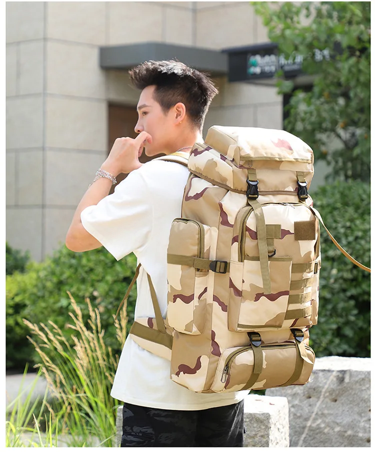 Mochila táctica militar de 80L para hombre, bolsa de viaje para deportes al aire libre, Molle, caza, Camping, senderismo