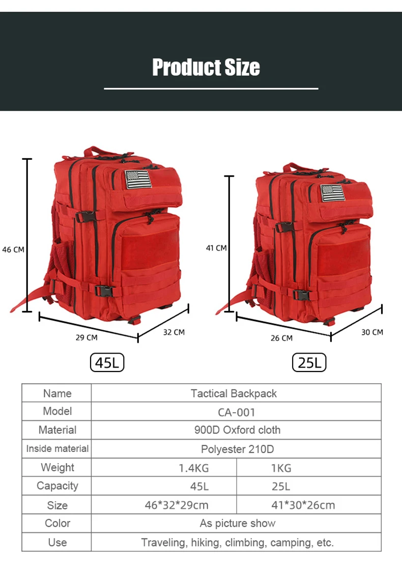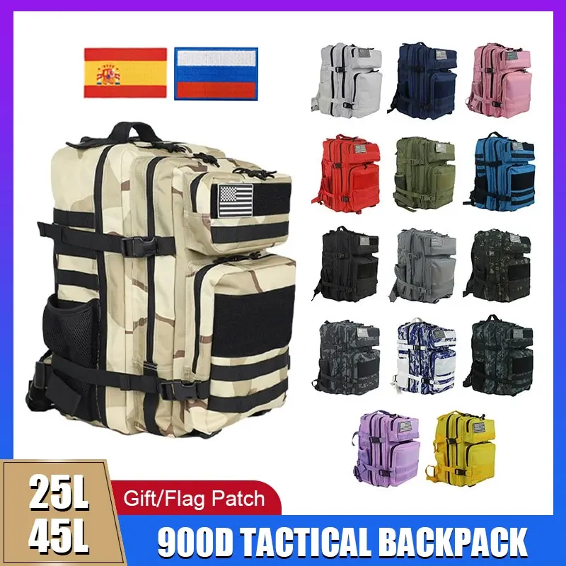 Mochila para acampar al aire libre de 25L/45L, bolsa de viaje táctica de camuflaje para hombres y mujeres, mochila de tela Oxford 900D para montañismo y senderismo