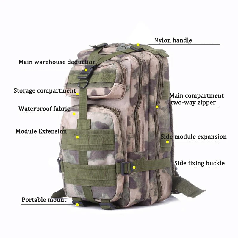 Mochila impermeable militar táctica para senderismo, Camping, montañismo, bolsa para deportes al aire libre, mochila de camuflaje grande de 20L para hombre