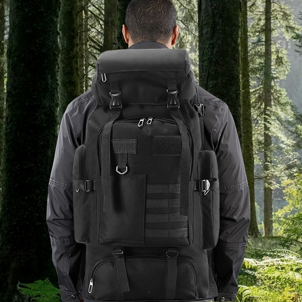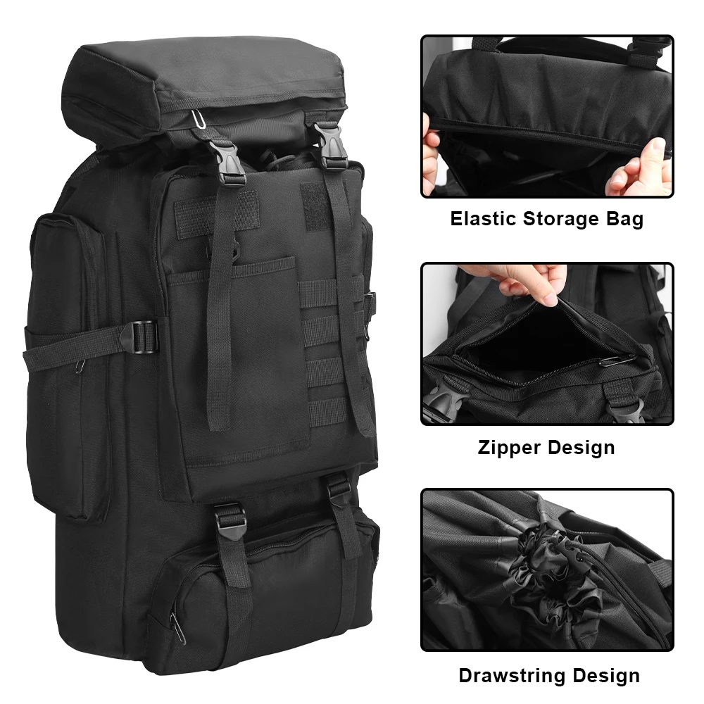 La mochila ofrece una amplia capacidad de 80 litros y cuenta con un cierre de cordón elástico en el compartimento principal para una expansión ajustable.Con compartimentos incorporados, almacena y organiza fácilmente equipos grandes y suministros esenciales para viajes prolongados.