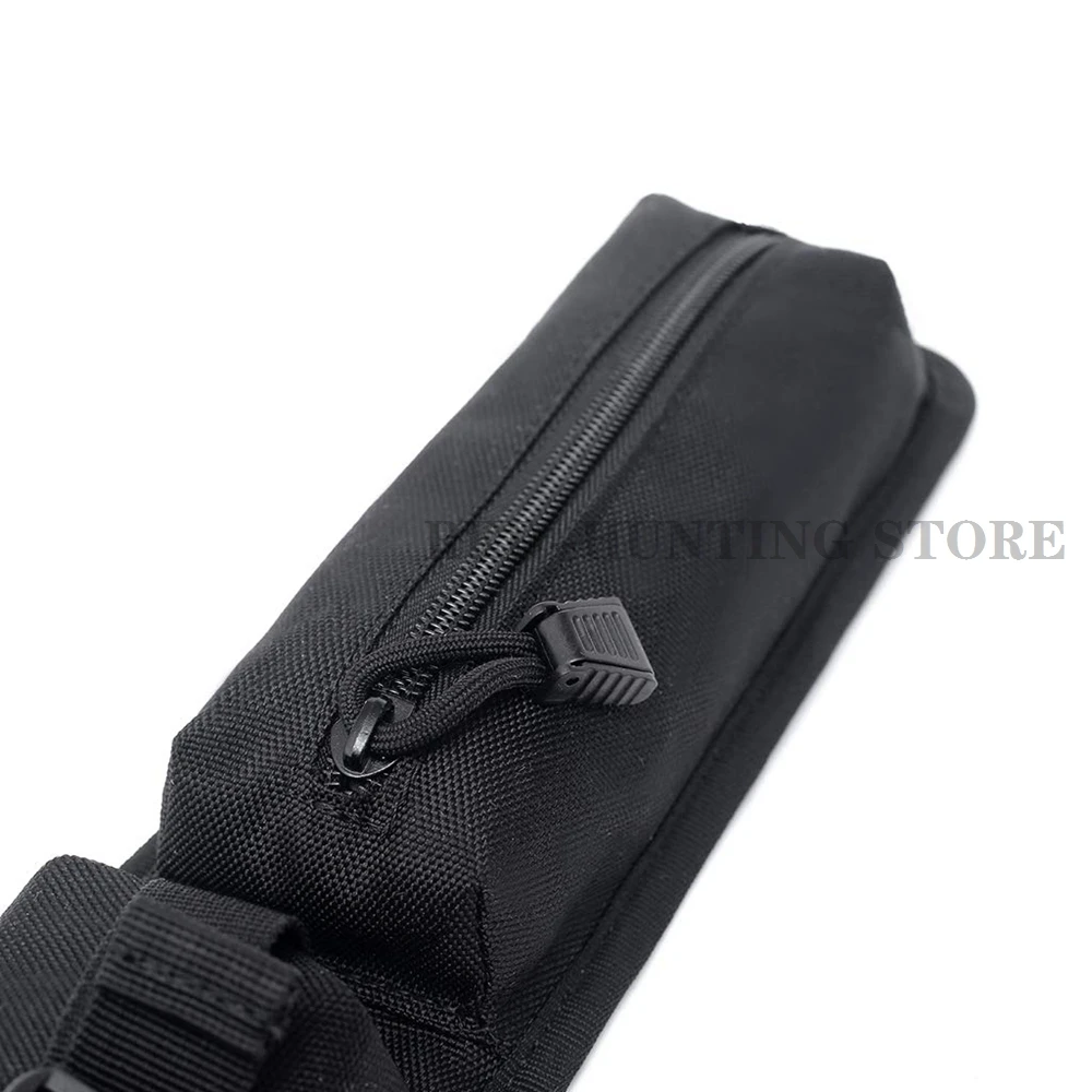Coloque su walkie-talkie en el bolsillo pequeño de arriba y coloque algún objeto pequeño en el bolsillo pequeño de abajo. Como llaves, artilugios, cuchillos, linternas, balas, etc.