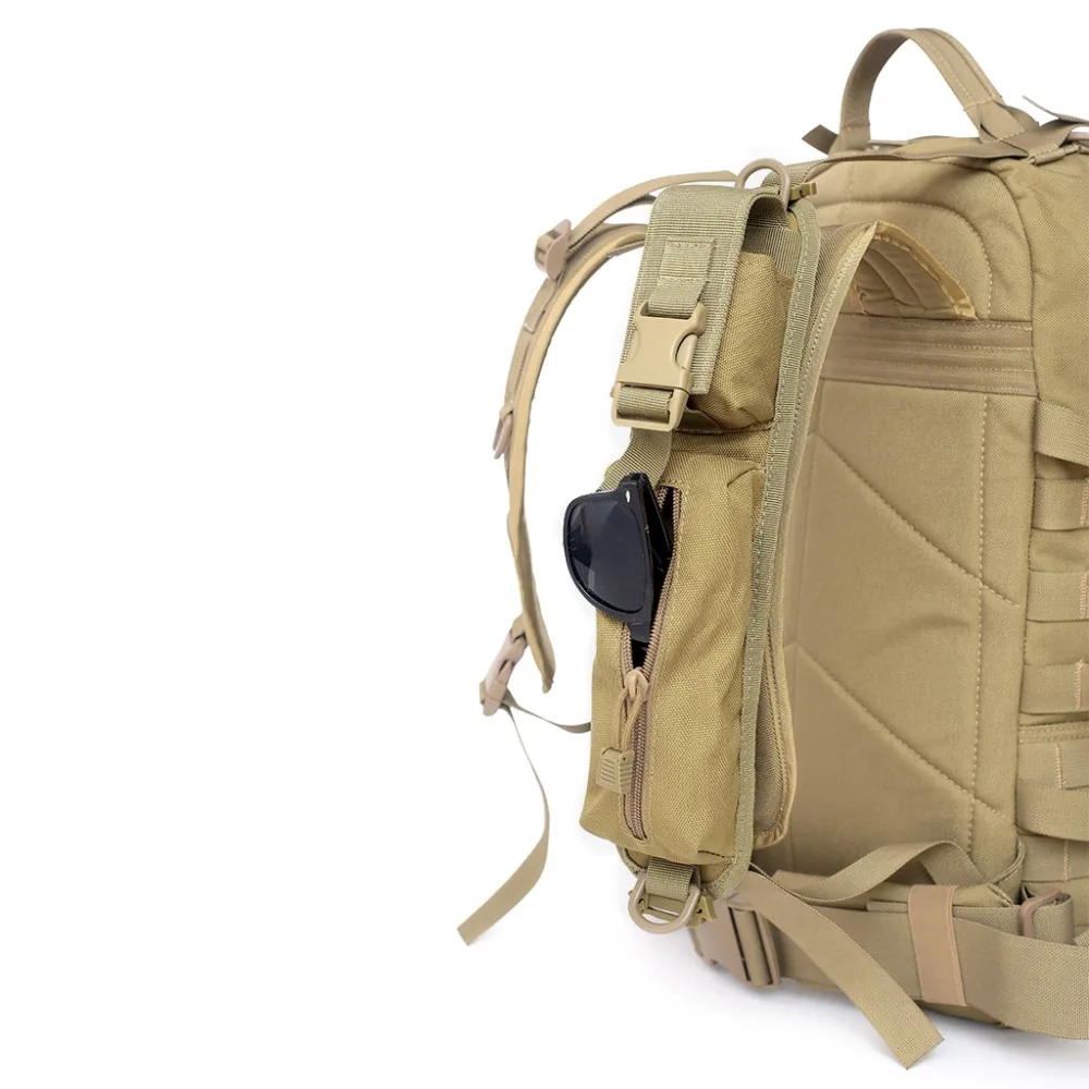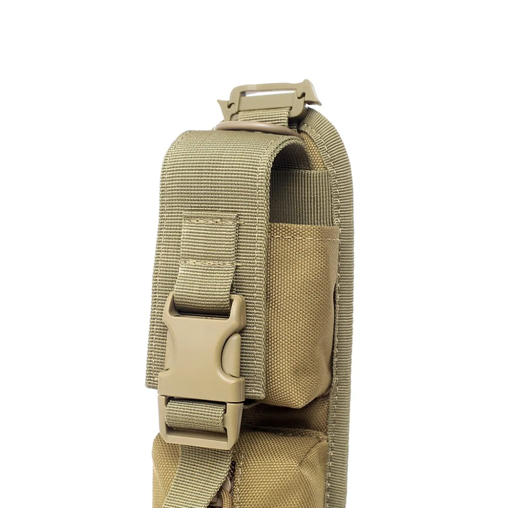 Peso: 135g Material: nailon 1000D Tamaño completo: 35cm (largo) x 8,5 cm (ancho)/13,78*3,34 pulgadas Diseño Molle, que se puede conectar fácilmente al cinturón, Correa y bolsas Molle Con dos bolsitas pequeñas en el exterior, una con cierre de hebilla y la otra con cremallera de color Dale a tu mochila espacio de almacenamiento adicional. Con dos bolsas pequeñas en el exterior, una con cierre de hebilla y la otra con cierre de cremallera, satisface sus diferentes necesidades de almacenamiento. Puede colocar su walkie-talkie en el bolsillo pequeño de arriba y colocar un objeto pequeño en el bolsillo pequeño de abajo. Como llaves, artilugios, cuchillos, linternas, balas, etc. Bricolaje para bolsas, haga que su paquete se vea más personalizado y más fresco. Aviso: la mochila no está incluida.