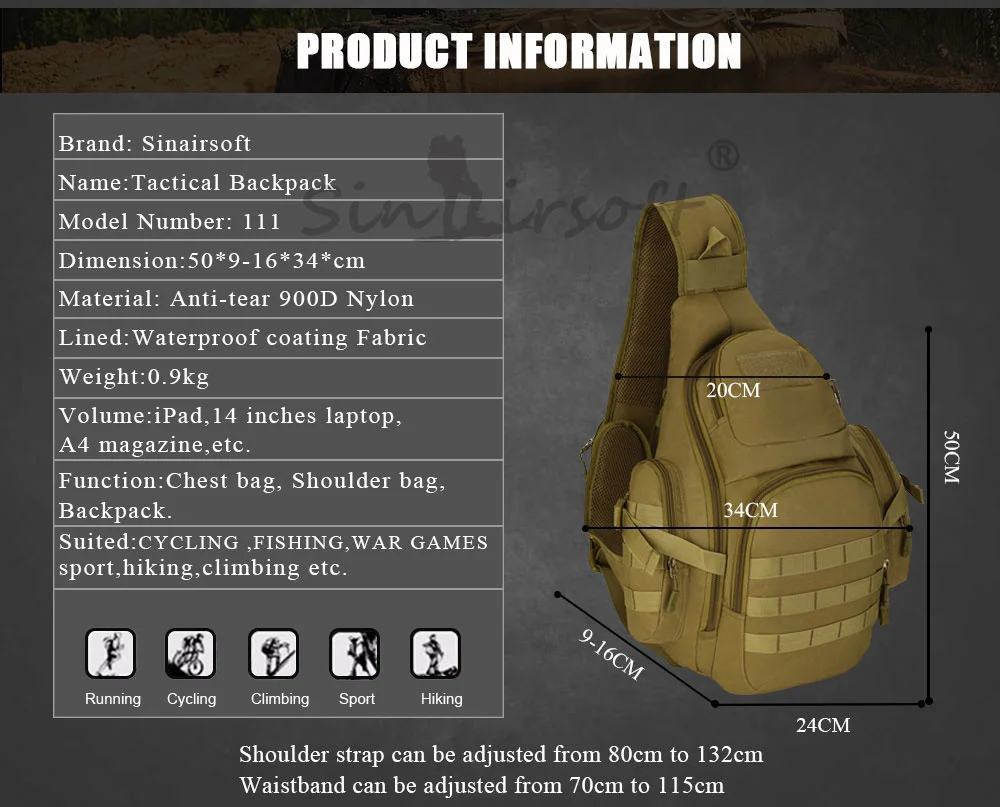 Adecuado para: ciclismo, pesca, juegos de guerra, deporte, senderismo, escalada, etc.