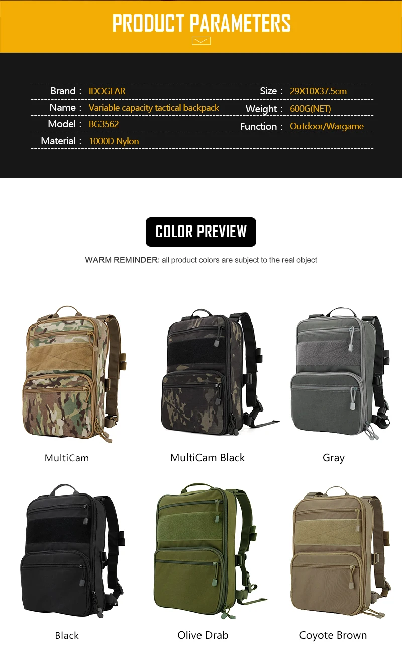 Mochila táctica multiusos para exteriores, mochila militar de Airsoft, para senderismo, Camping, IDOGEAR 410, 3562