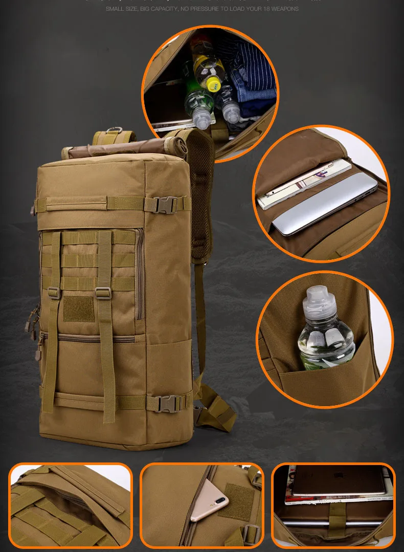 Mochila táctica multiusos para hombre, bolsa de equipaje de 50L, bolso de hombro para caza y exteriores