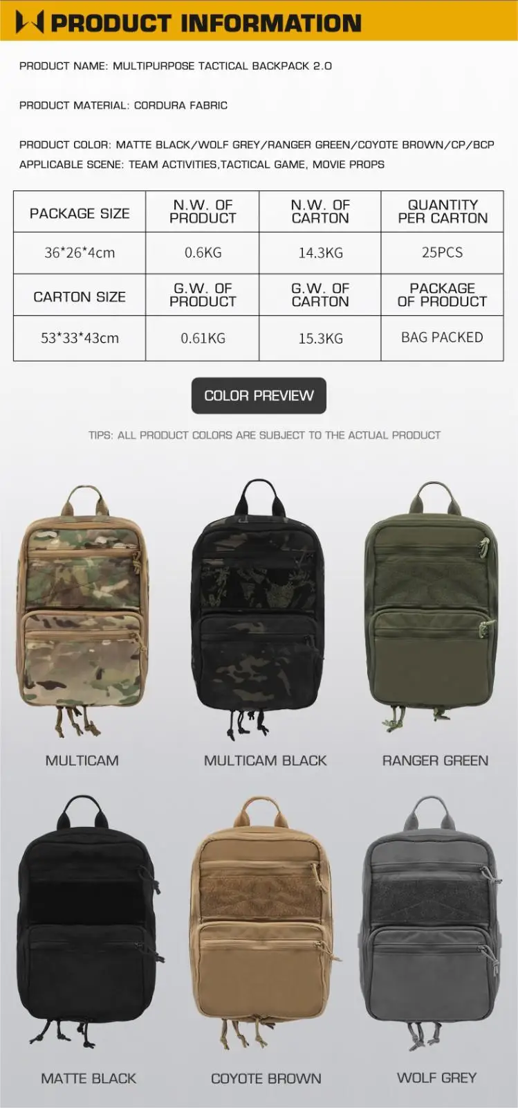 Mochila táctica multiusos Multicam Ranger Green Bolsa de material de alta calidad Capacidad escalable Combinación libre Sistema Molle