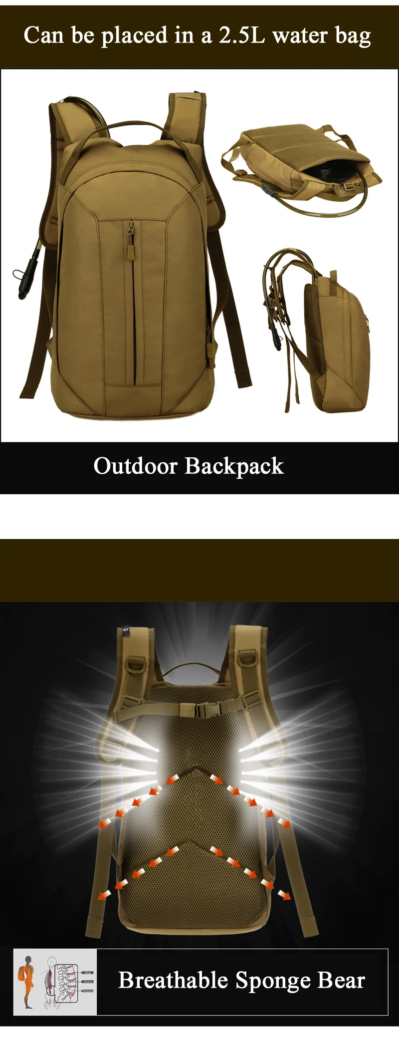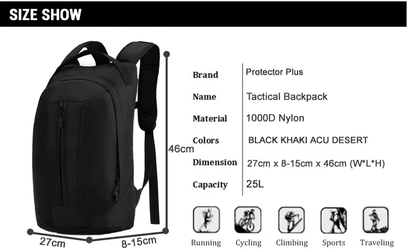 Mochila táctica de nailon, 25L, Cool Camping Gear 1000D, Molle, senderismo, bicicleta, deportes al aire libre, ciclismo, escalada, bolsa de camping