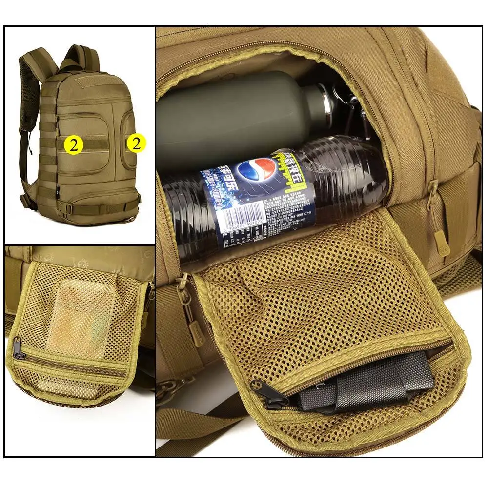 2. La botella de bebida o agua se puede colocar en una subbolsa. La capa de cremallera se puede utilizar para colocar un teléfono móvil u otro objeto.