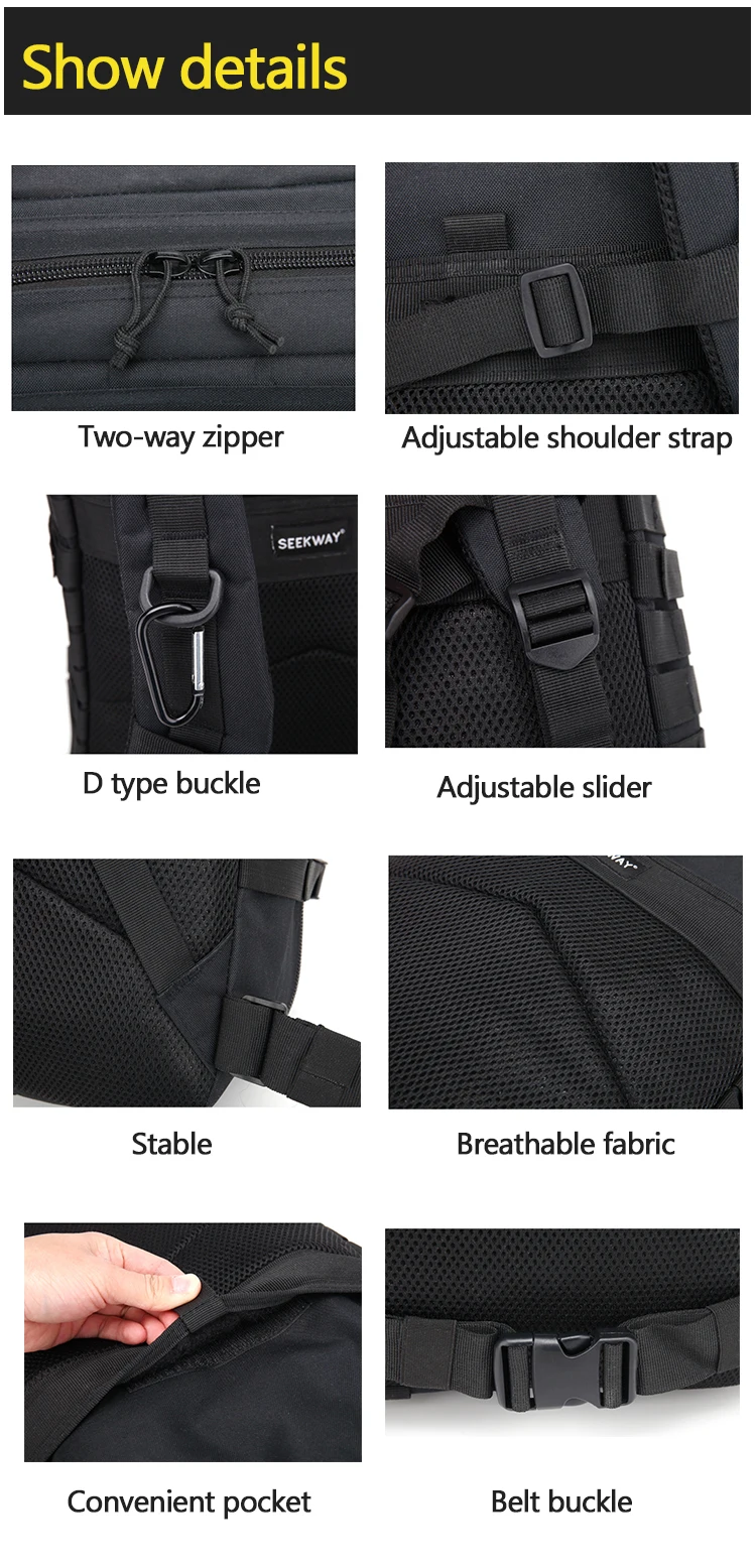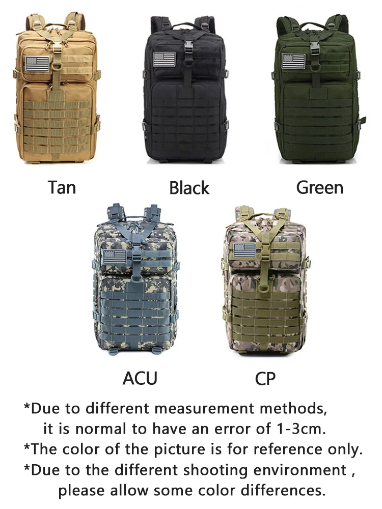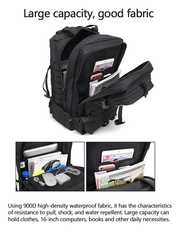 Mochila táctica Nylon Negro Bolsa para exteriores Ejército Militar Caza-Escalada Senderismo Pesca Camping Ciclismo