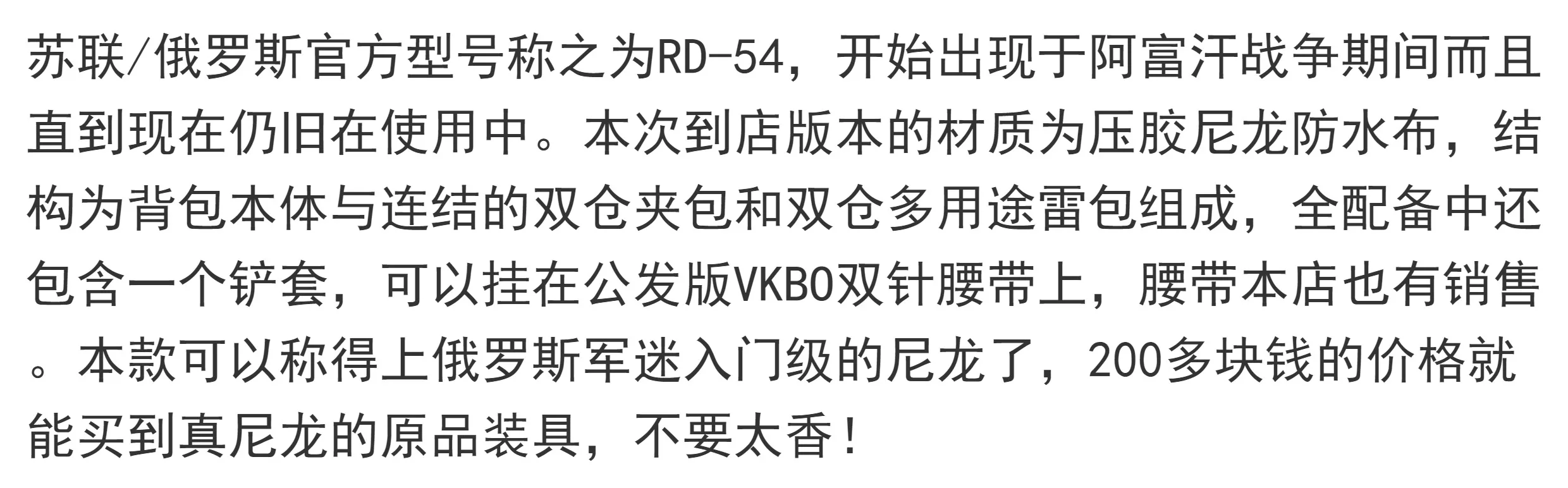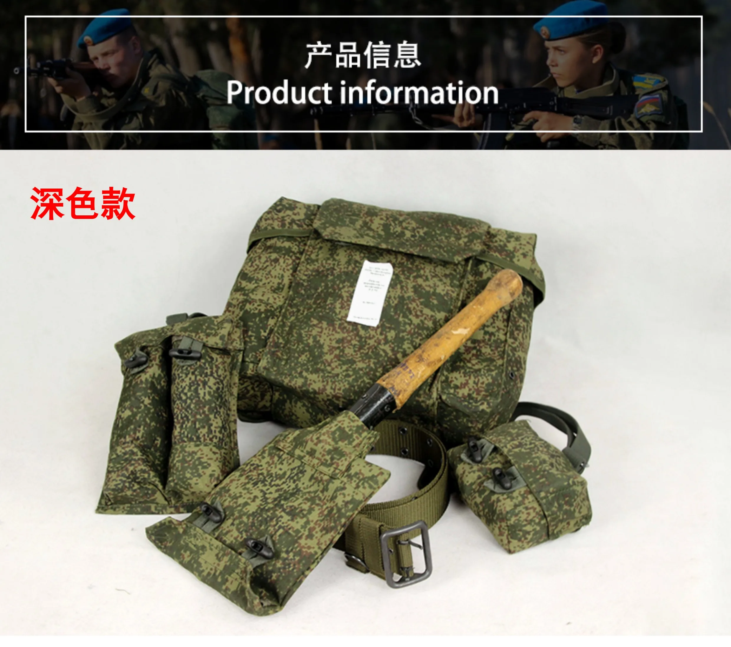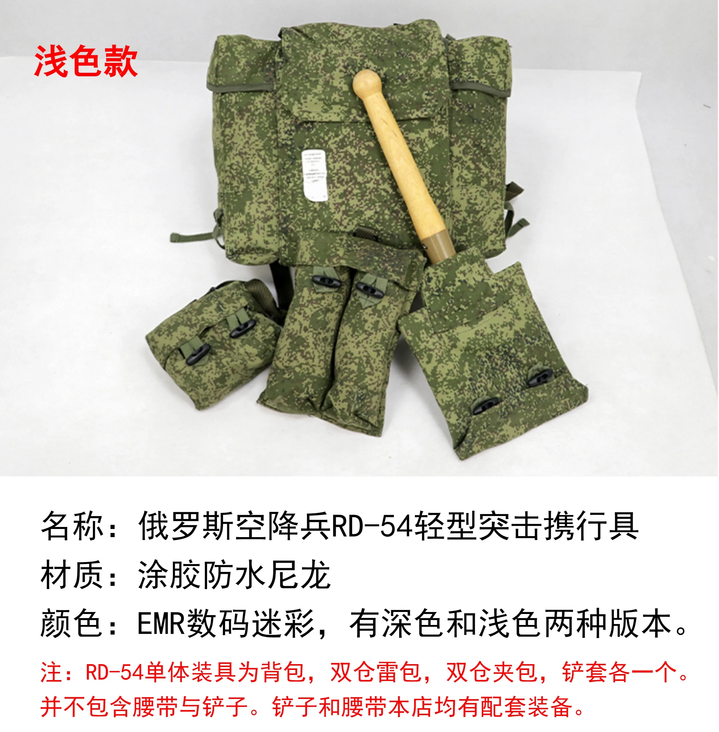Note: RD-54 single equipment for backpack, double warehouse mine bag, double warehouse clip bag, shovel sleeve each. Belts and shovels are not included. Shovels and belts are available in our shop.