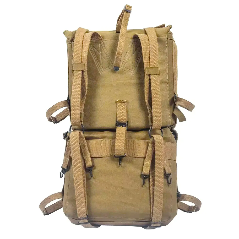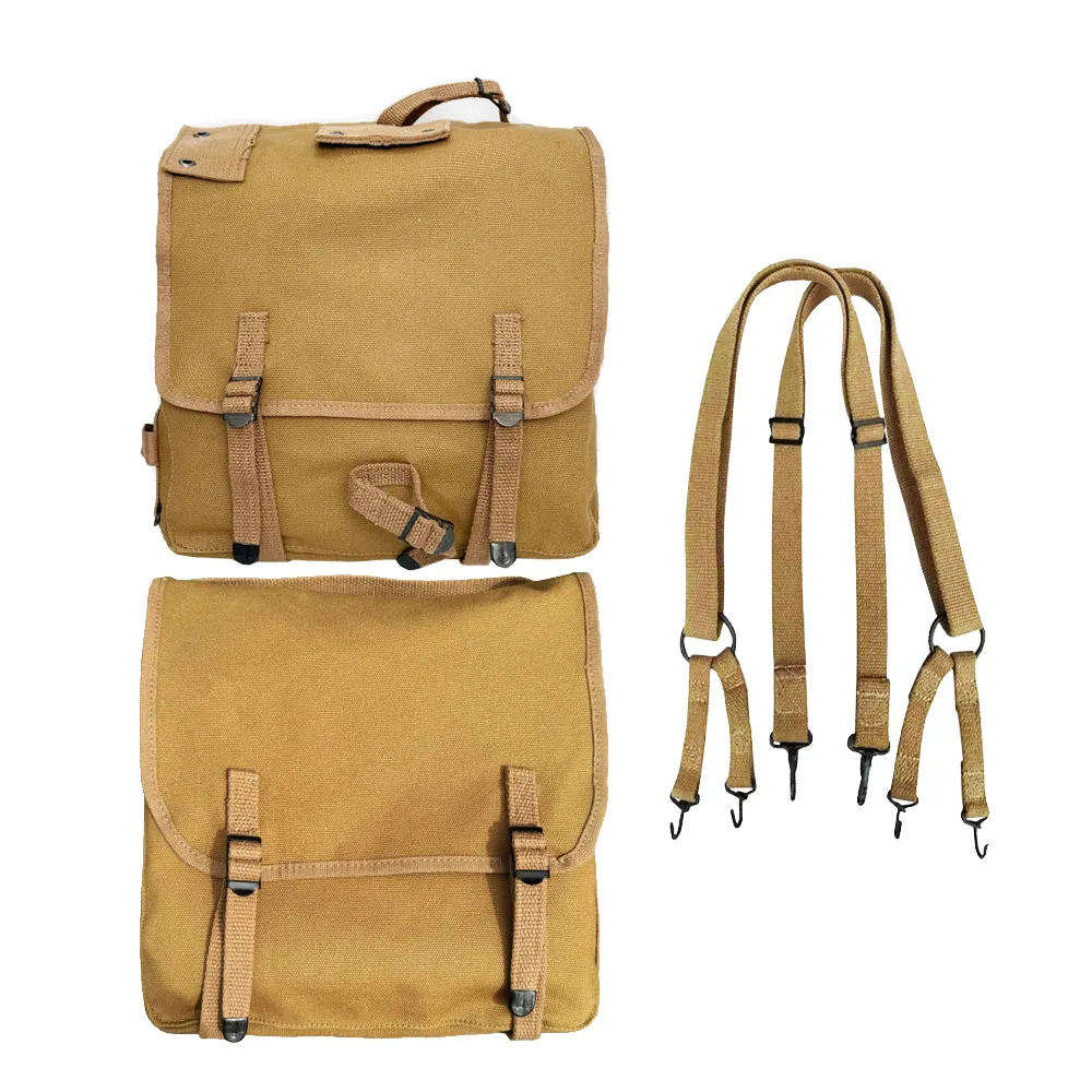 Este conjunto de equipos es una combinación de un kit M1941, que incluye los paquetes M1941 superior e inferior, así como dos correas M1941. Todo el conjunto consta de cuatro artículos. El equipo utiliza materiales originales: tela de lona fina de color caqui, idéntica a la utilizada por los soldados estadounidenses en 1941, que ofrece una excelente resistencia al desgaste y al desgarro. Diseño clásico: está fabricado íntegramente según las huellas de planos del equipo de campo M1941 del ejército estadounidense de la Segunda Guerra Mundial, incluidos detalles como métodos de costura y estilos de hebilla.