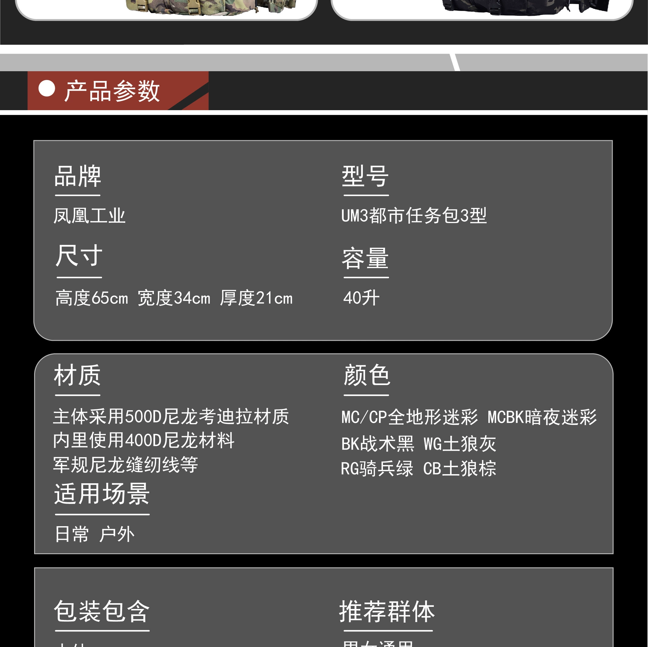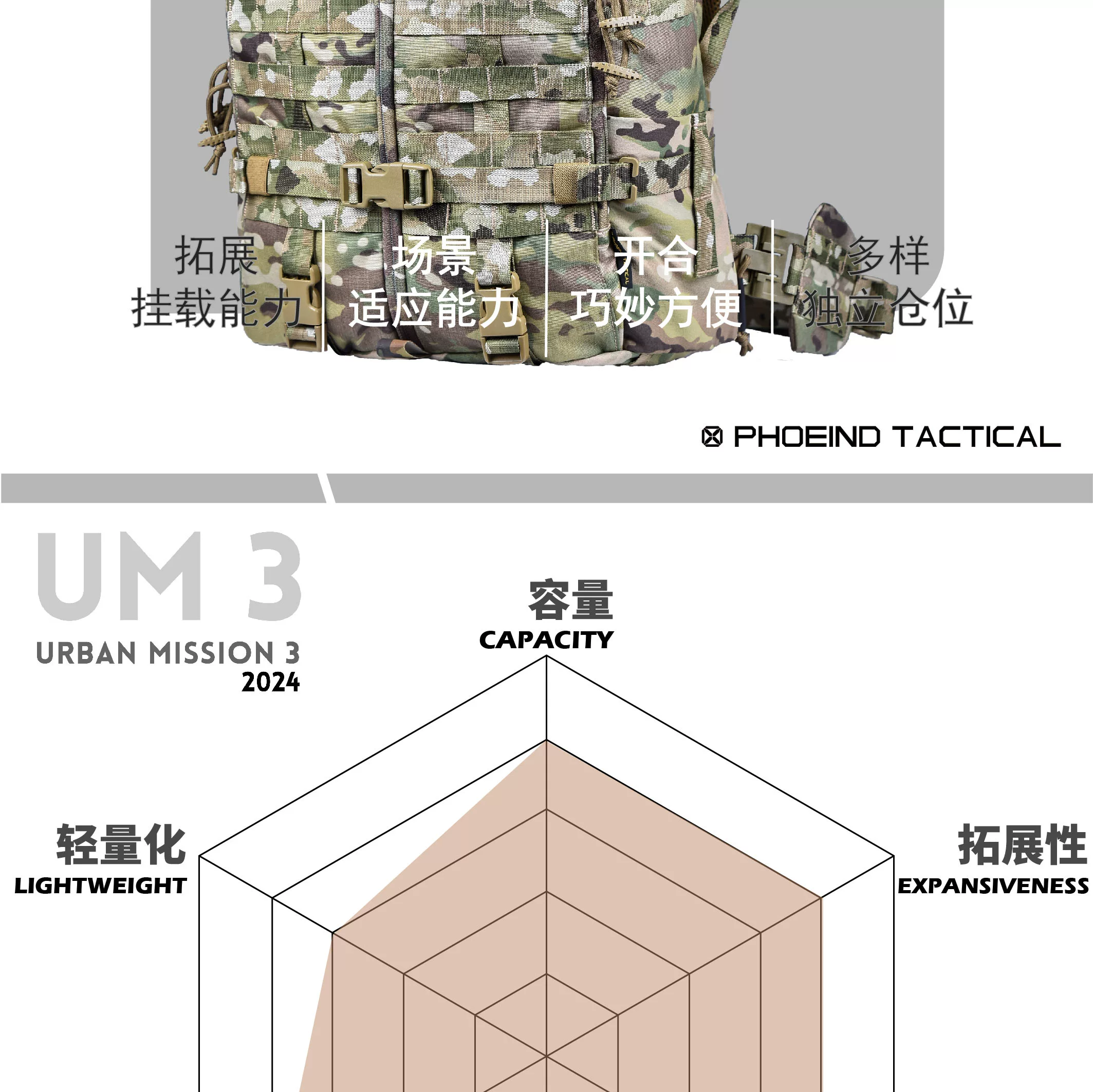 Mochila táctica UM3 Urban Task Pack, tipo 3, 3D, tres días, viaje, EDC