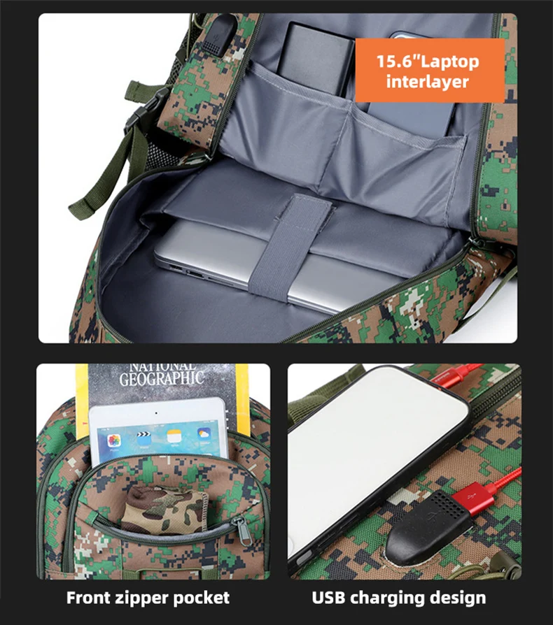 Mochila táctica de escalada USB, gran capacidad, senderismo, pesca, Camping, bolsa multifuncional para deportes de viaje al aire libre