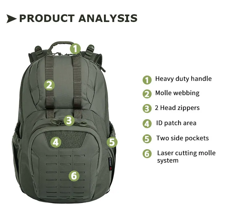 Mochila táctica YAKEDA 26L, mochila de camuflaje EDC MOLLE impermeable, bolsa de asalto para senderismo, Camping, caza, viaje, mochila para montar