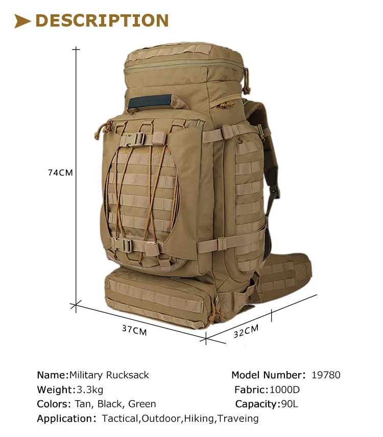Mochila táctica YAKEDA de 90L, bolsa de Montañismo verde, impermeable, a prueba de polvo, transpirable, mochila táctica de viaje al aire libre para aventura