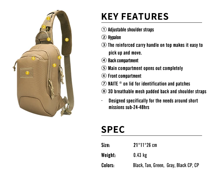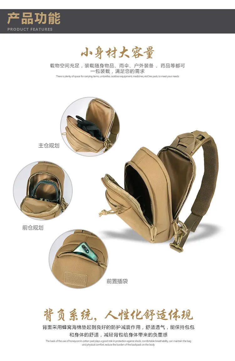 Mochila táctica YAKEDA, bolso de pecho táctico para exteriores, bolso de hombro portátil multifuncional, bolso cruzado, bolso de pecho oculto para pistola