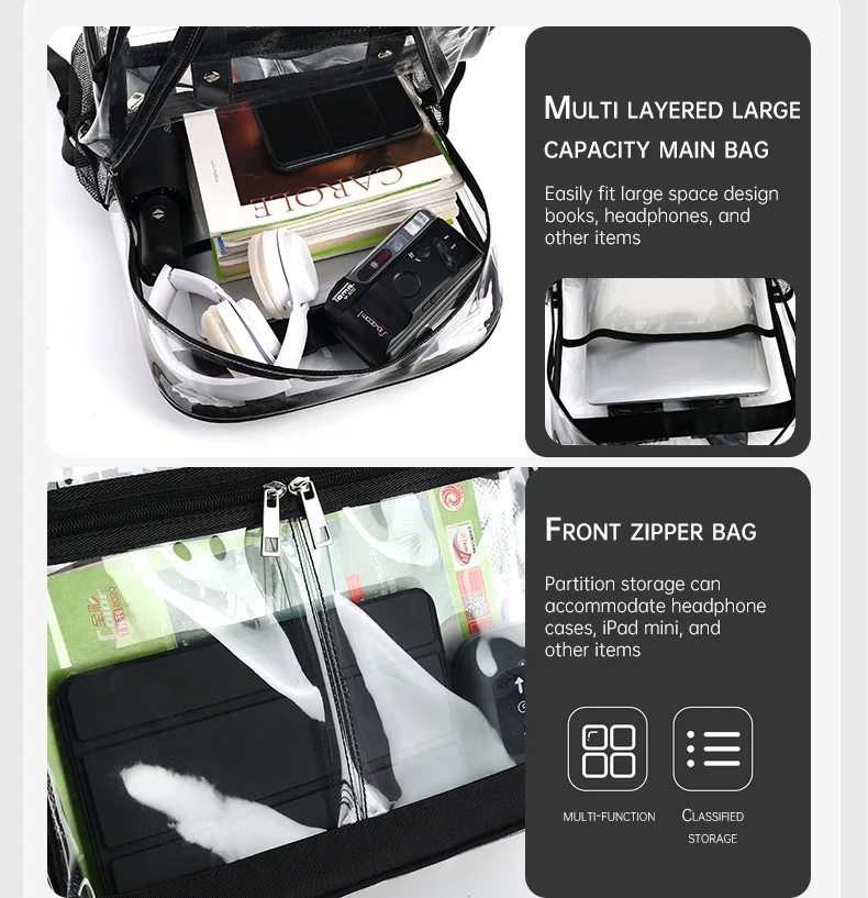Mochila transparente de PVC, bolsa multifuncional de gran capacidad, entrenamiento al aire libre, deporte, viajes, Camping, bolsas, paquete de ocio a la moda