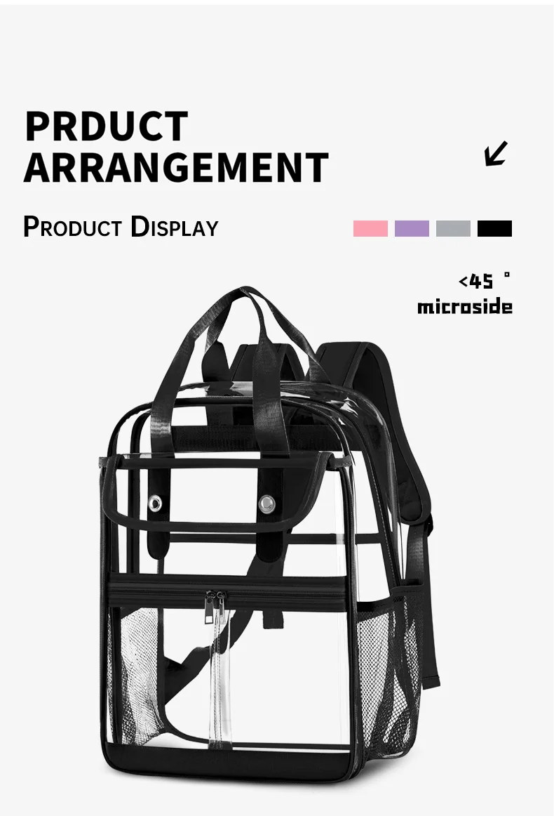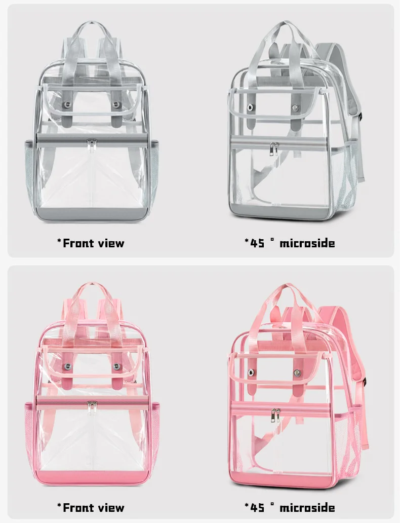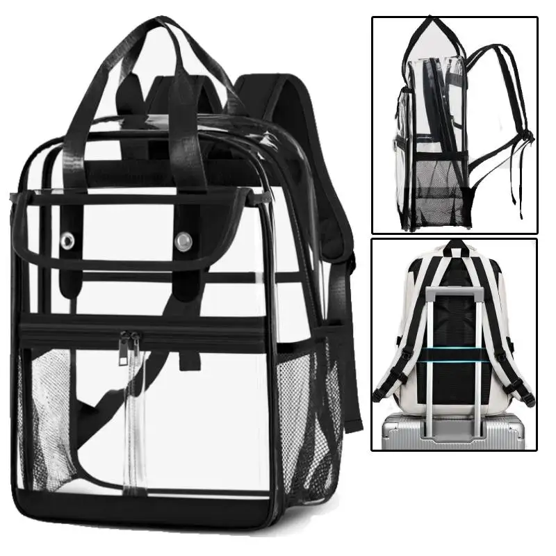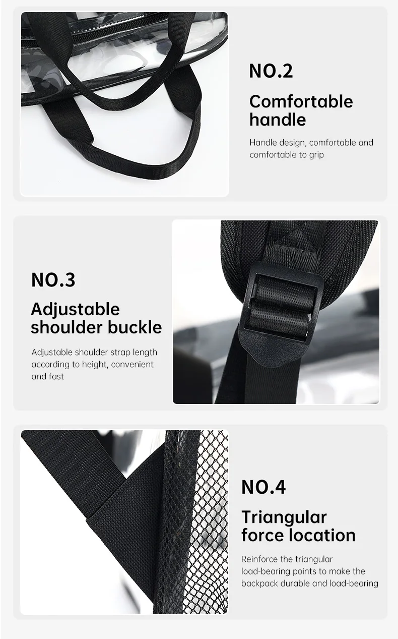 3.Configuración transparente de PVC, mochila impermeable, acceso de un vistazo