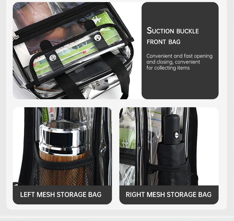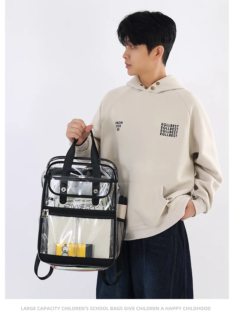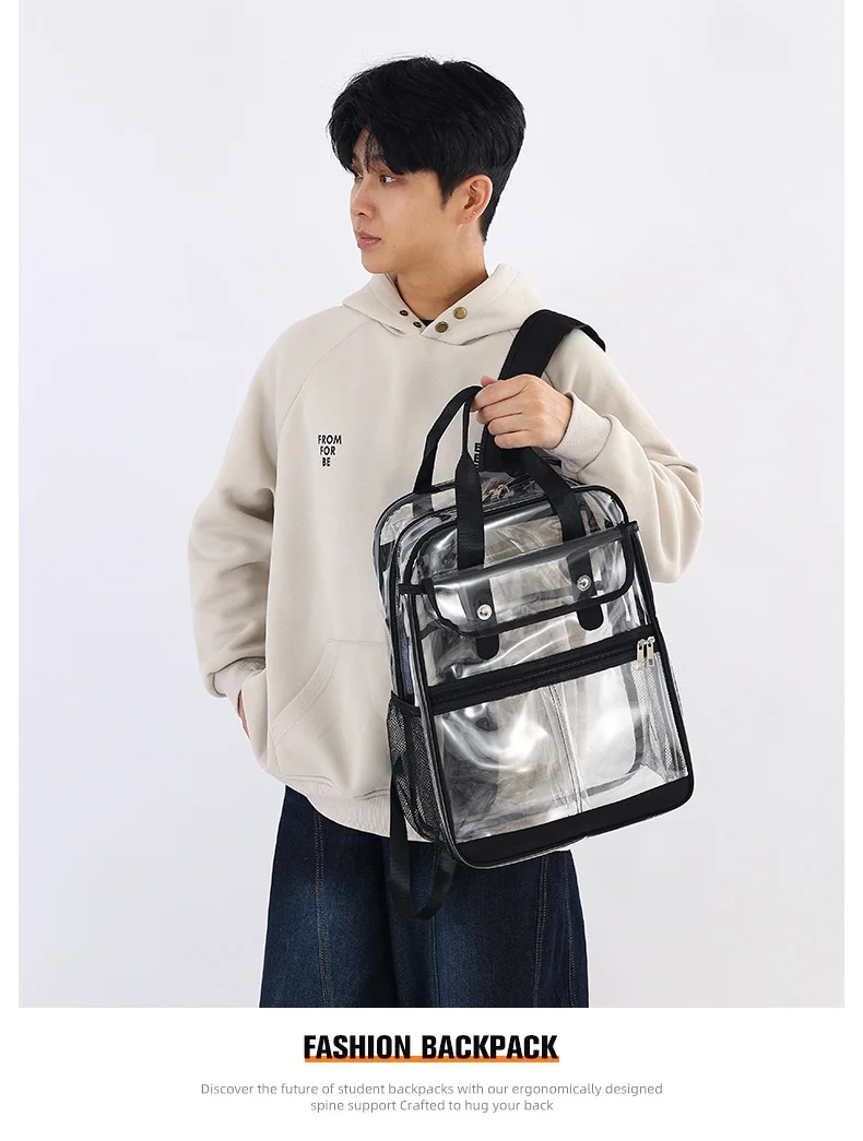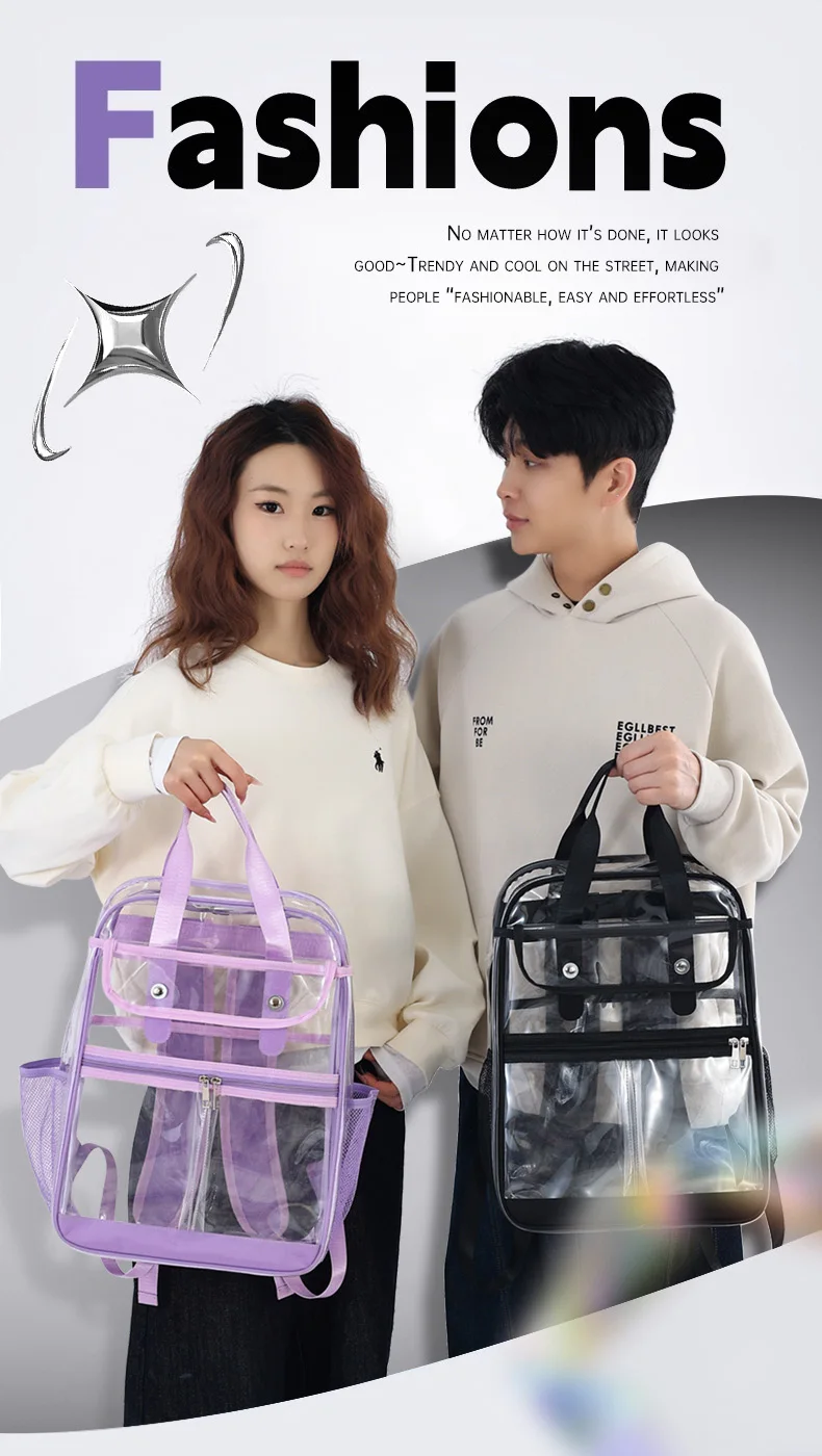 3.Configuración transparente de PVC, mochila impermeable, acceso de un vistazo