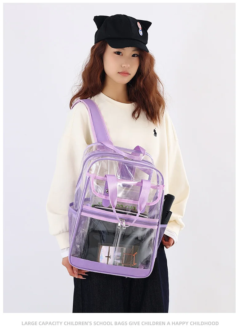 Mochila transparente Bolso de hombro de Pvc Bolso escolar para estudiantes de gran capacidad