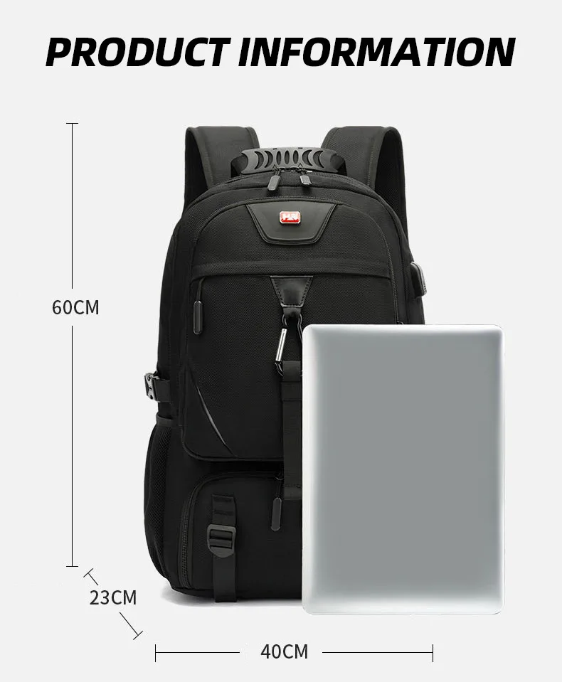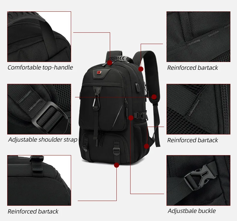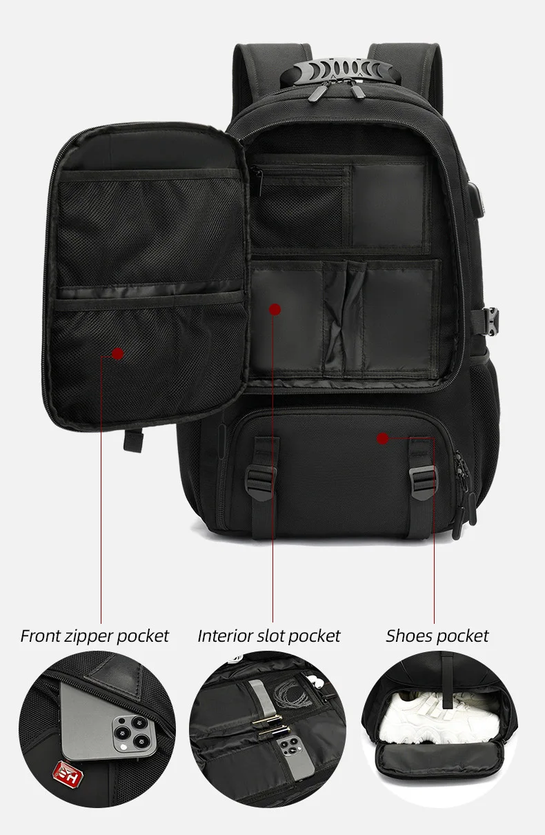Mochila USB de 60L para deportes al aire libre, Camping y senderismo, para hombre, paquete de zapatos, viaje, escalada, ciclismo, bolsa expandible, bolsa de almacenamiento para ordenador portátil para estudiantes