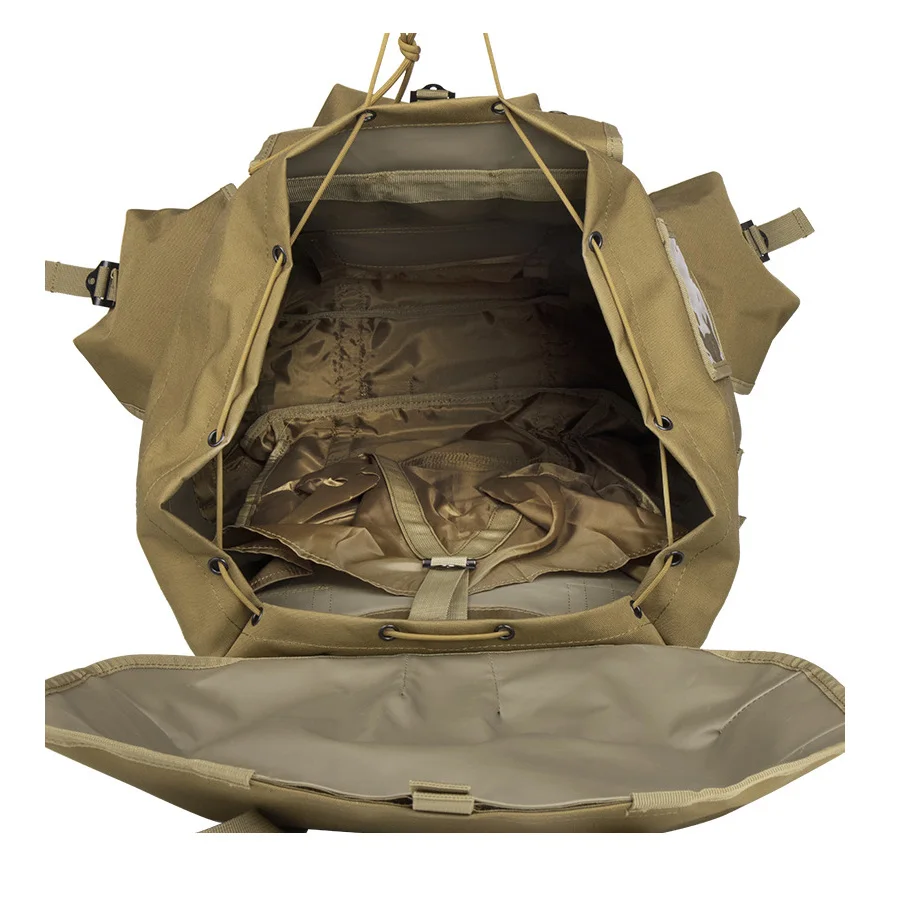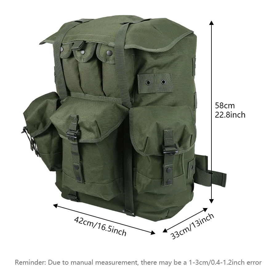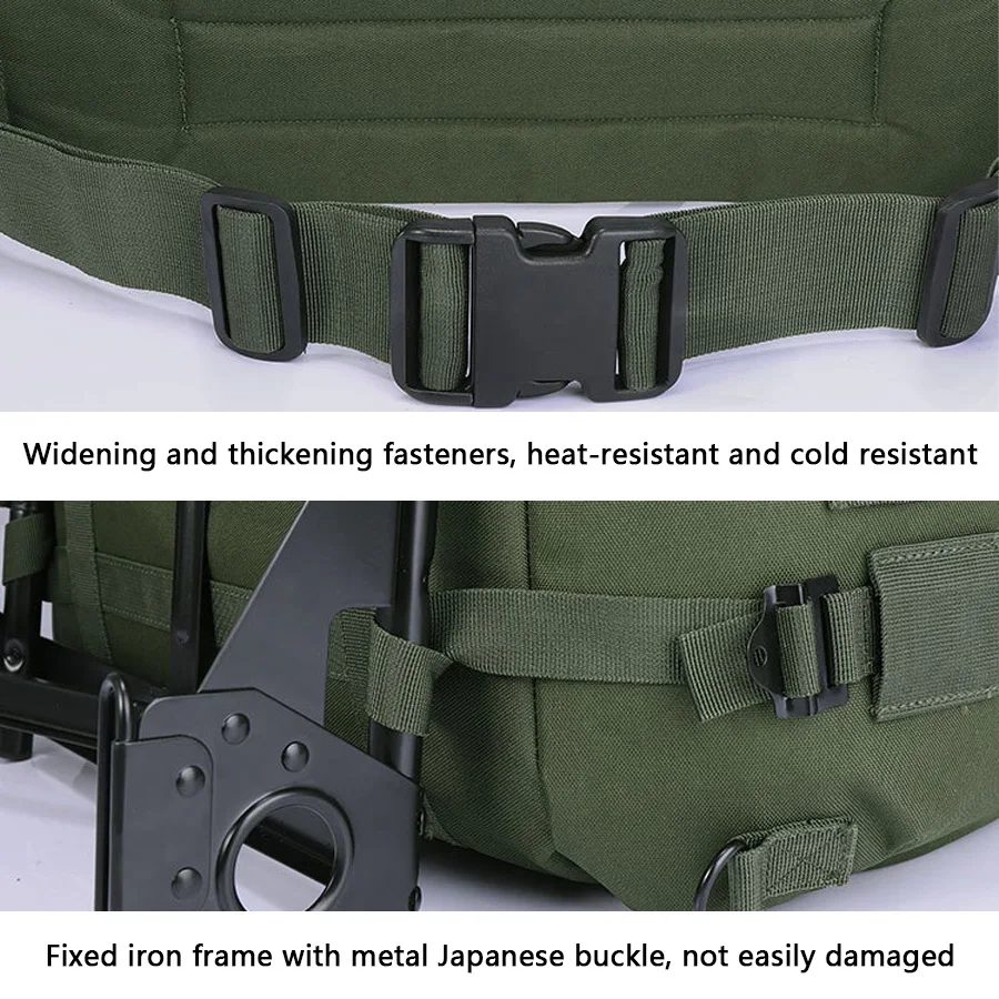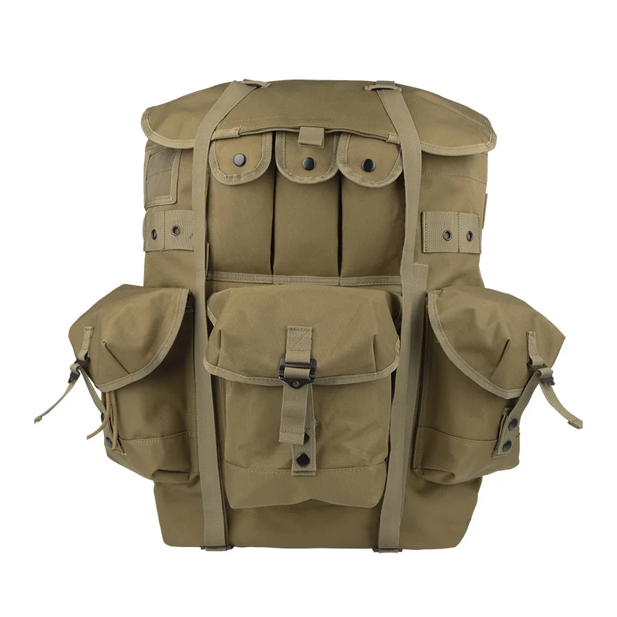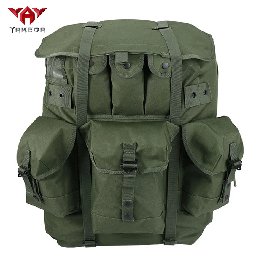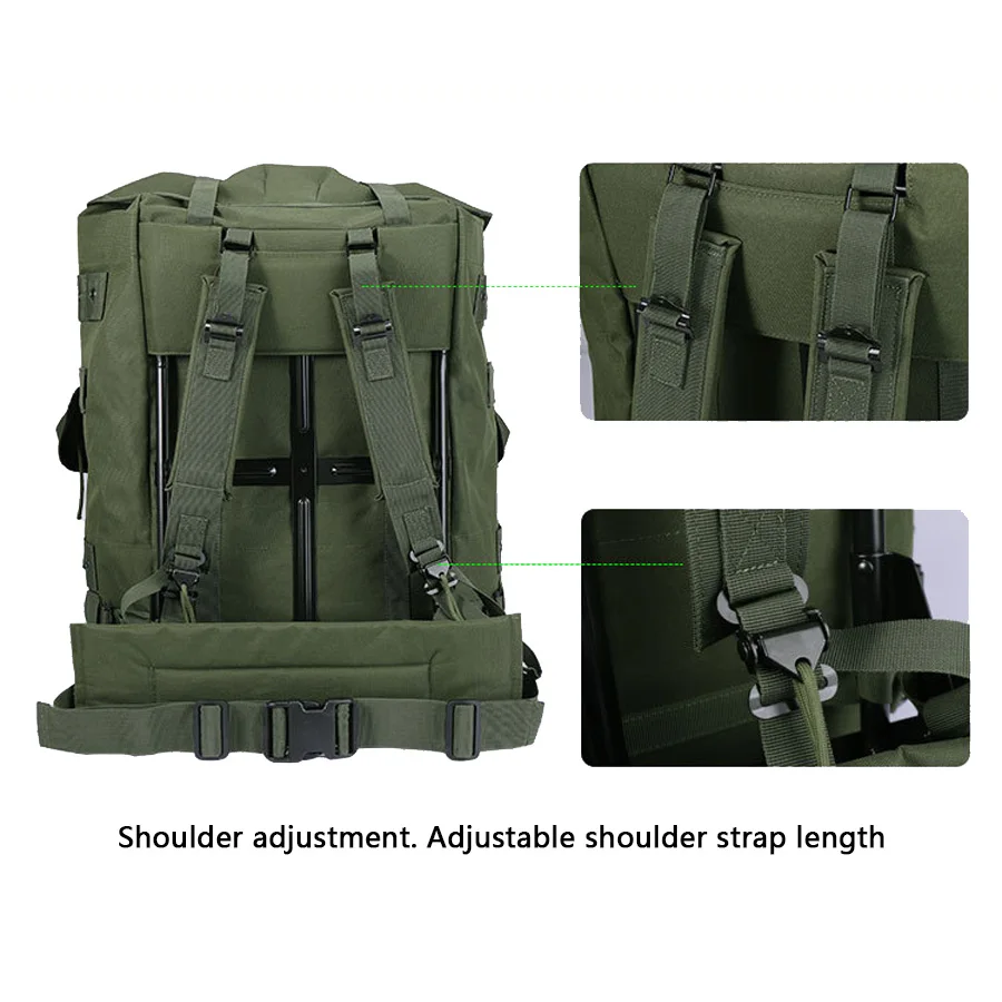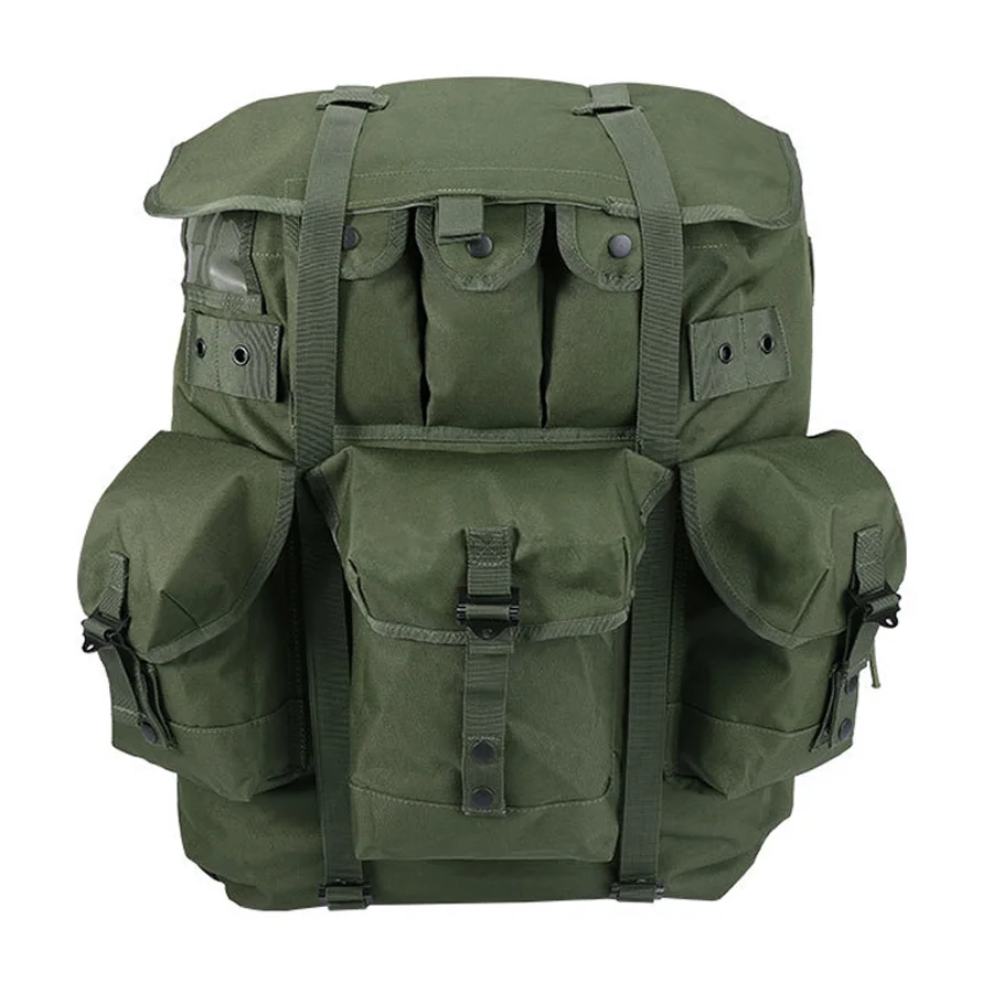Mochila verde oliva con marco de hierro vendedora caliente para montañismo, mochila de suministros de camping de gran capacidad