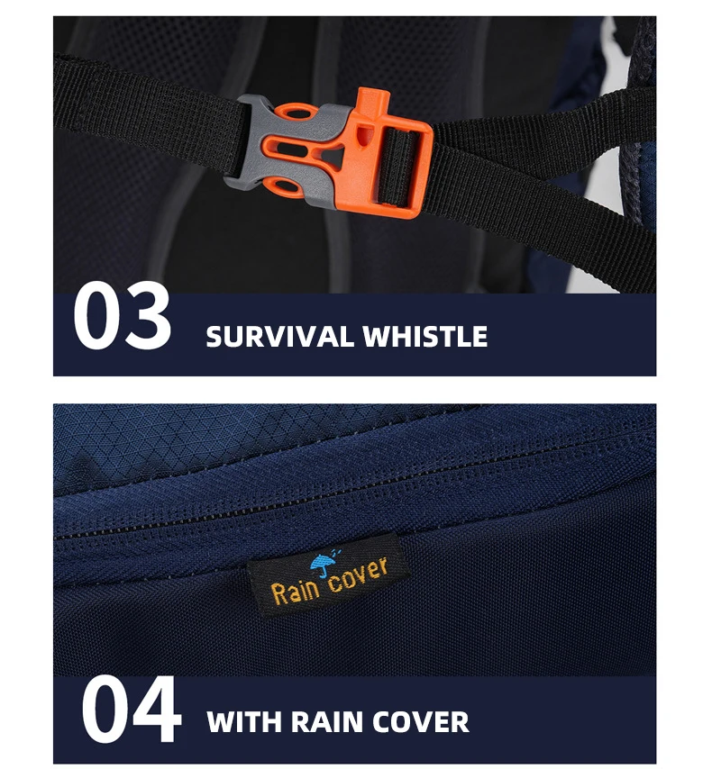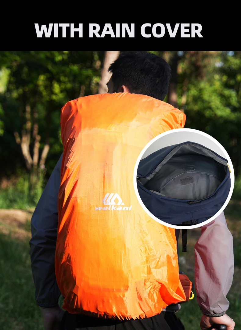 1. Con cubierta para la lluvia gratuita y la cubierta para la lluvia está en el bolsillo inferior con cremallera.