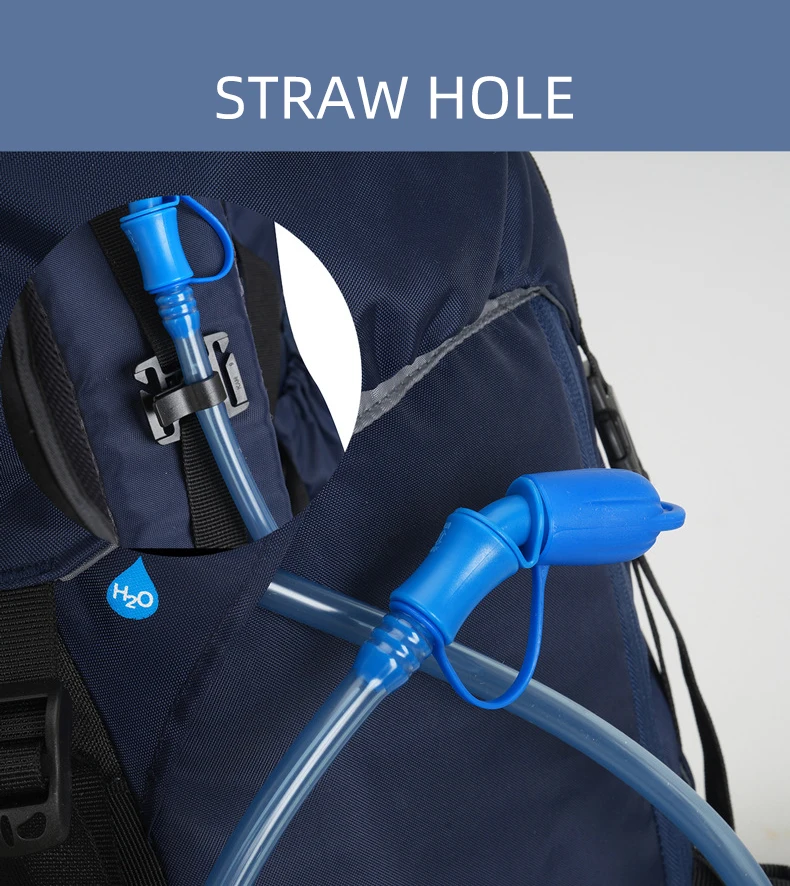 2.Mochila de hidratación con salida de tubería de agua y clip de fijación de tubería de agua en la correa para el hombro.