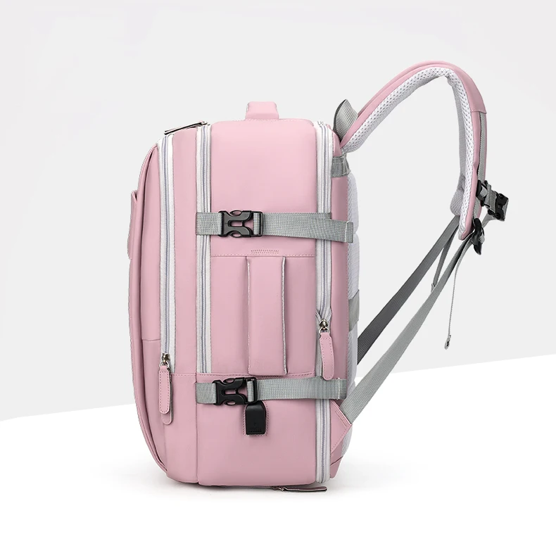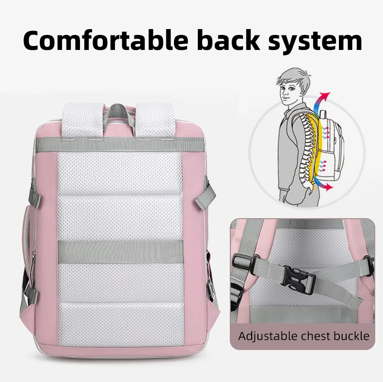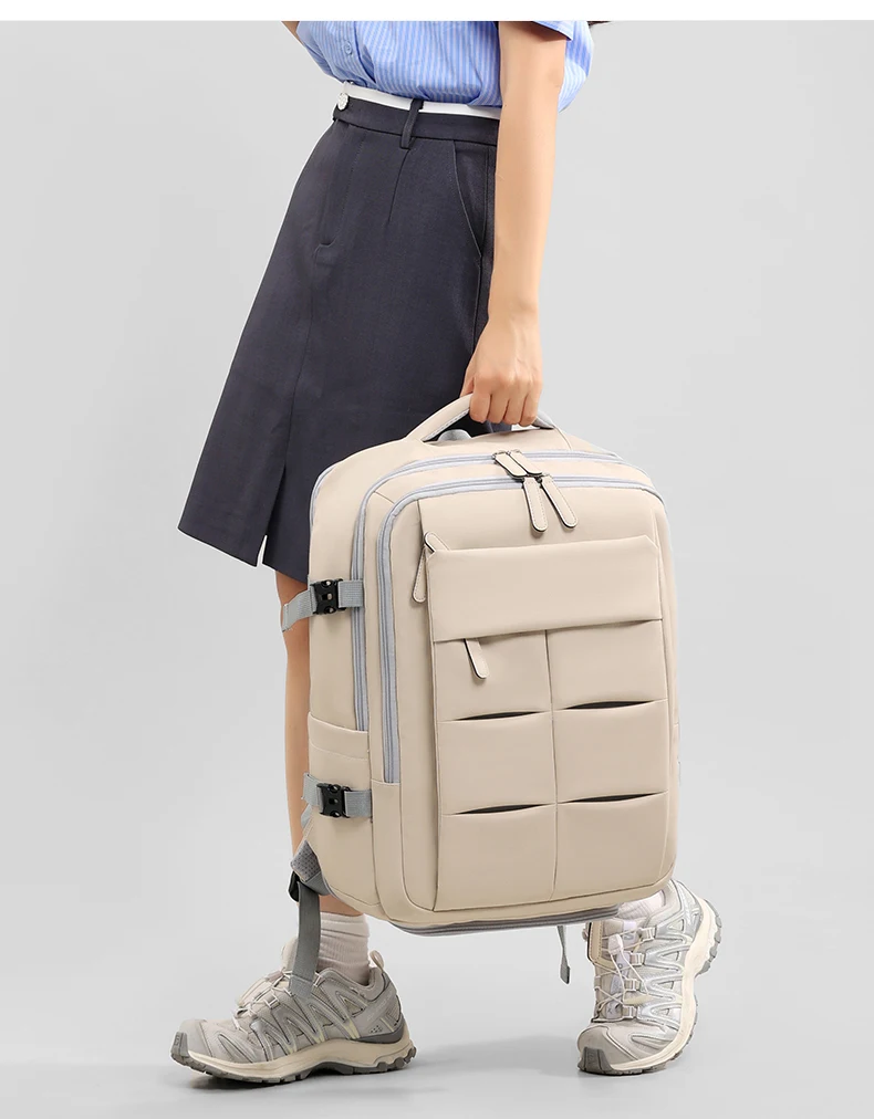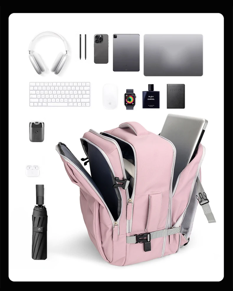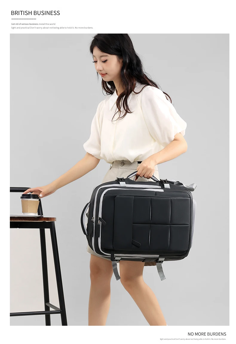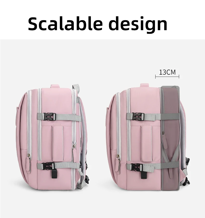 1.Diseño de expansión extensible, aumento de la capacidad de la mochila: cremallera de expansión lateral, aumento de capacidad, almacenamiento conveniente para viajes de negocios de larga distancia.