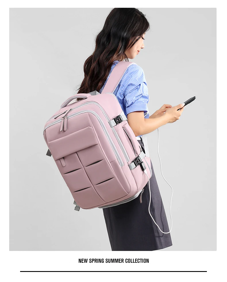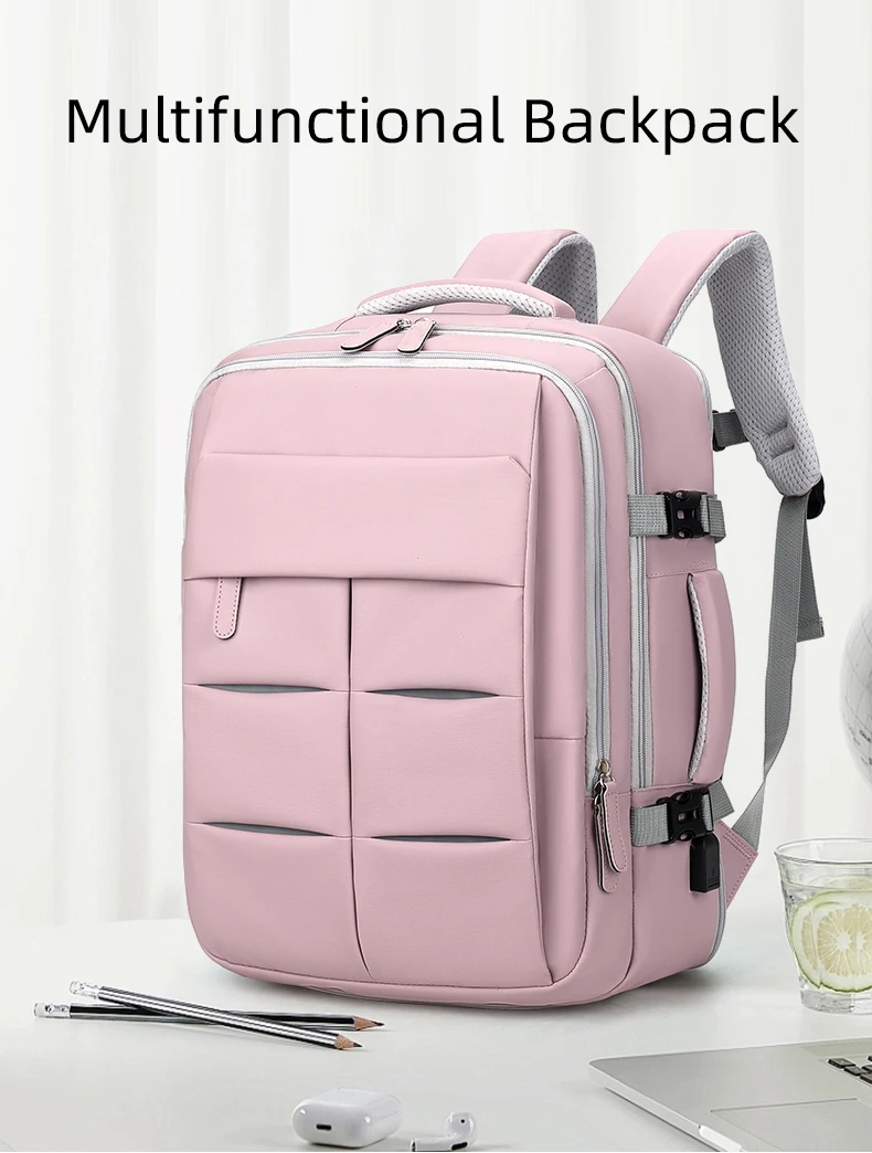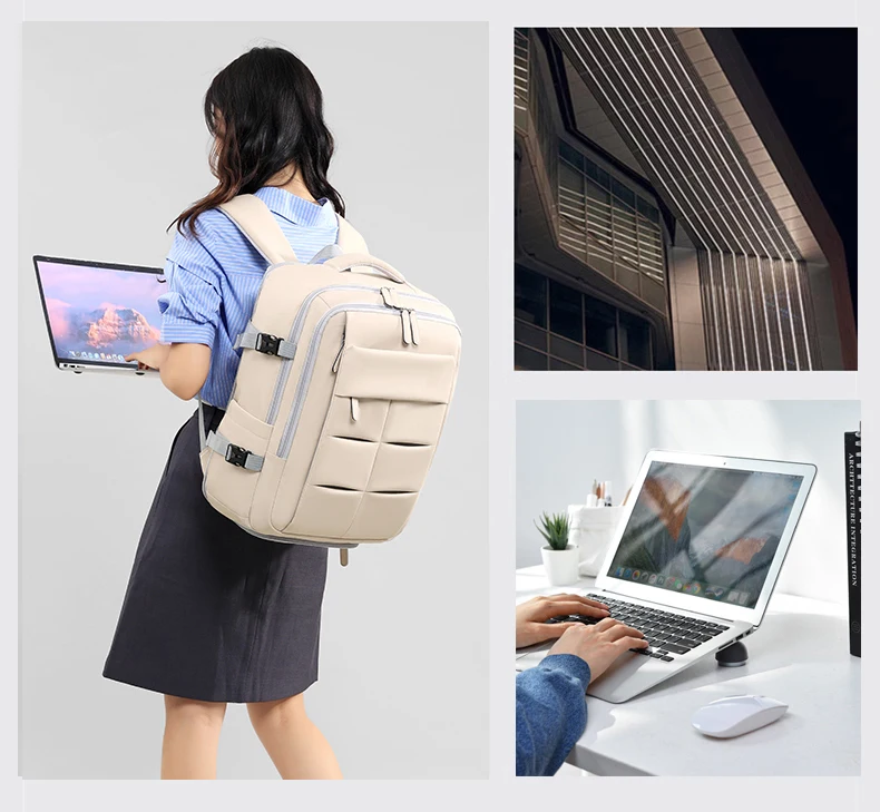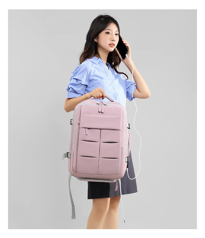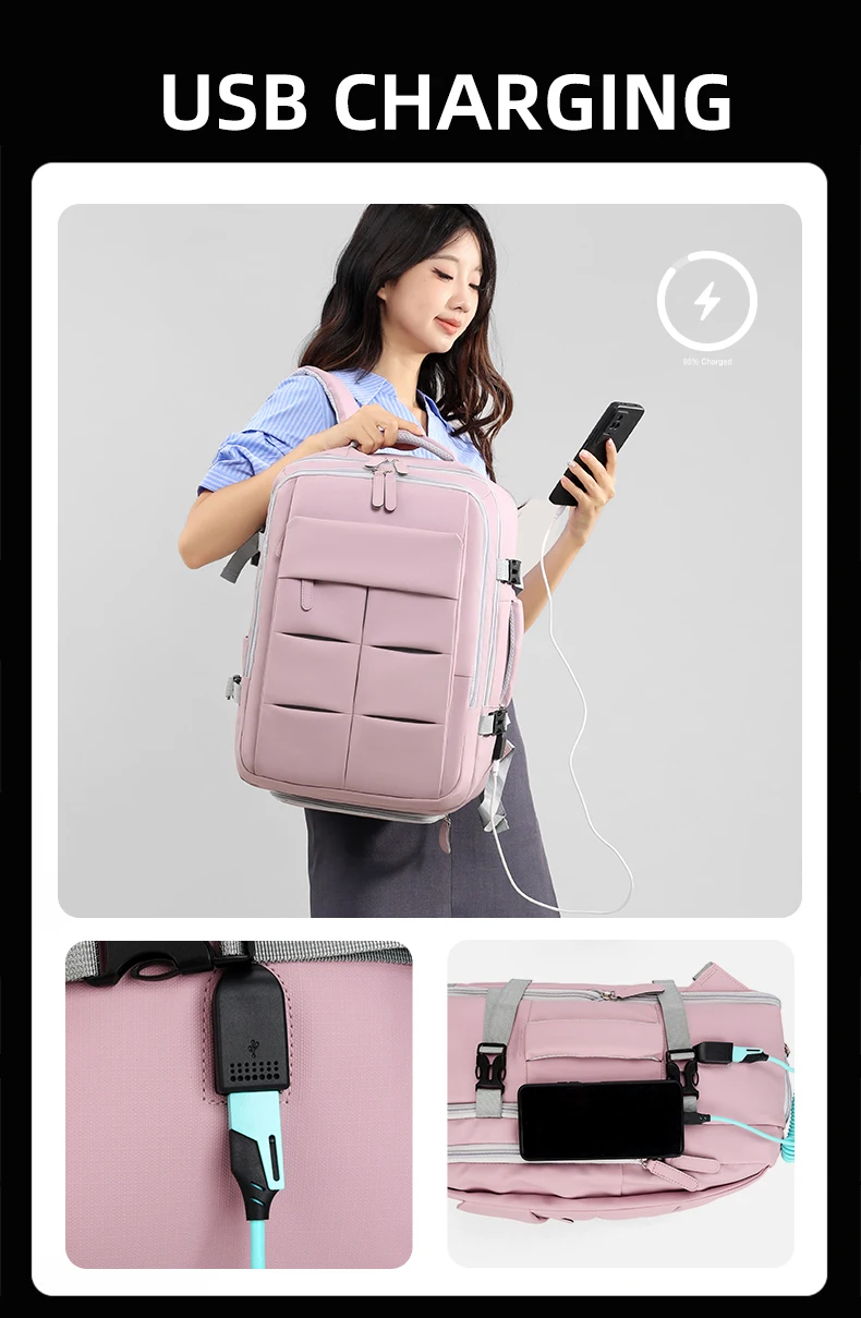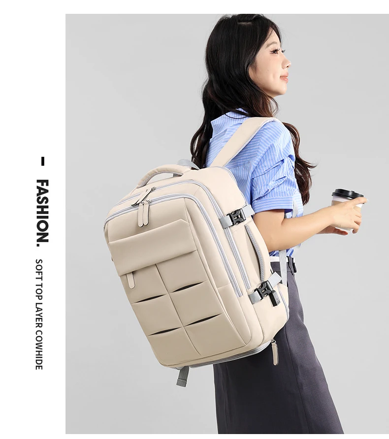1.Diseño de expansión extensible, aumento de la capacidad de la mochila: cremallera de expansión lateral, aumento de capacidad, almacenamiento conveniente para viajes de negocios de larga distancia.
