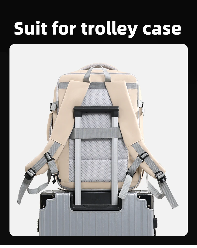 5.Diseño de barra de tracción: el diseño de la correa trasera puede colgar la bolsa en la maleta para viajar fácilmente.