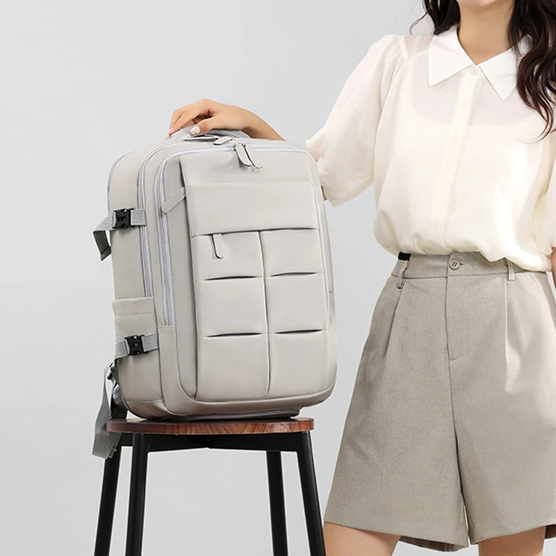 1.Diseño de expansión extensible, aumento de la capacidad de la mochila: cremallera de expansión lateral, aumento de capacidad, almacenamiento conveniente para viajes de negocios de larga distancia.