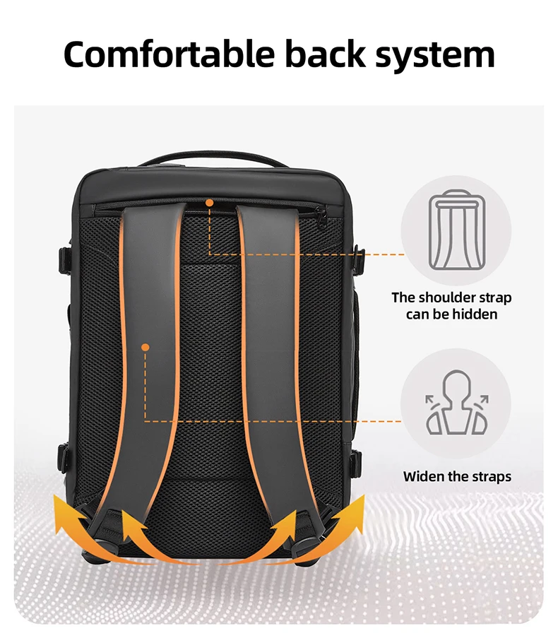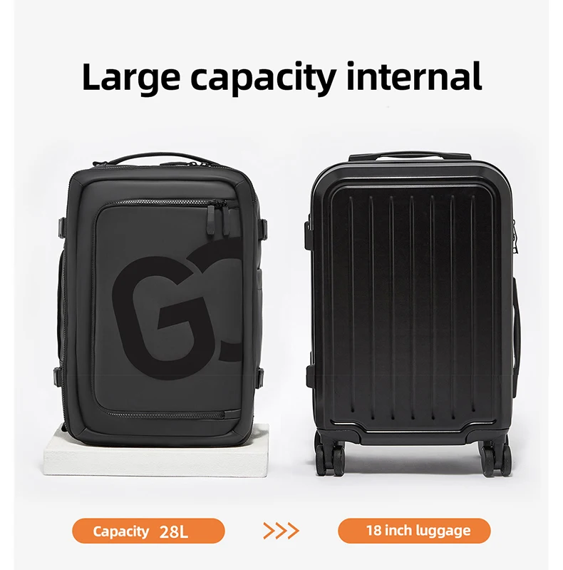 4.La correa en la parte posterior de la mochila se puede unir a la maleta, lo cual es más conveniente para viajar.