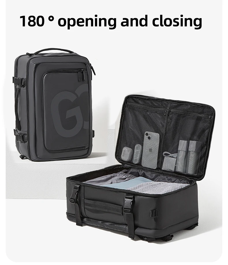 Caja de 1.180 grados con apertura completa, gran capacidad, para satisfacer las necesidades de viaje.