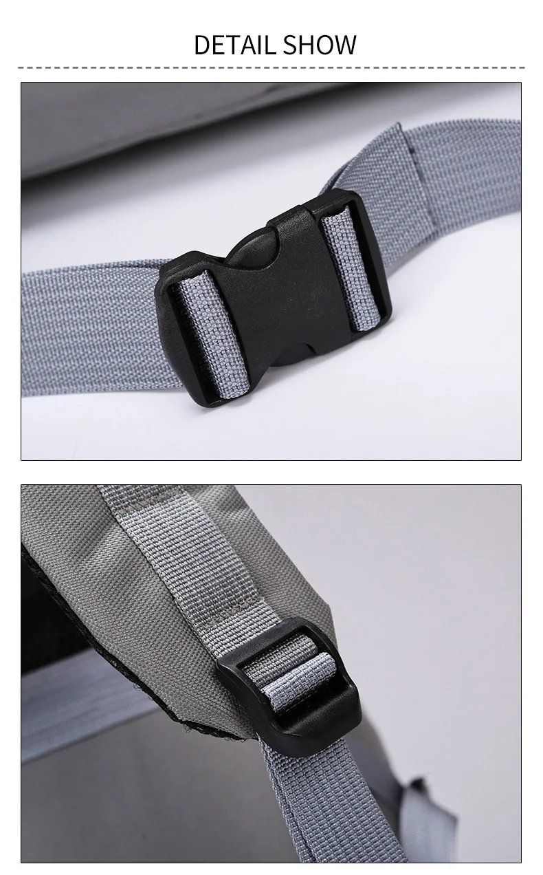 3.Diseño de hebilla de alta calidad en la cintura para asegurar fácilmente la mochila.