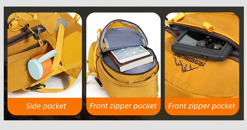 3.Bolsas de almacenamiento multicapa: la mochila está diseñada con múltiples bolsas de almacenamiento, que pueden contener todo tipo de pertenencias personales.