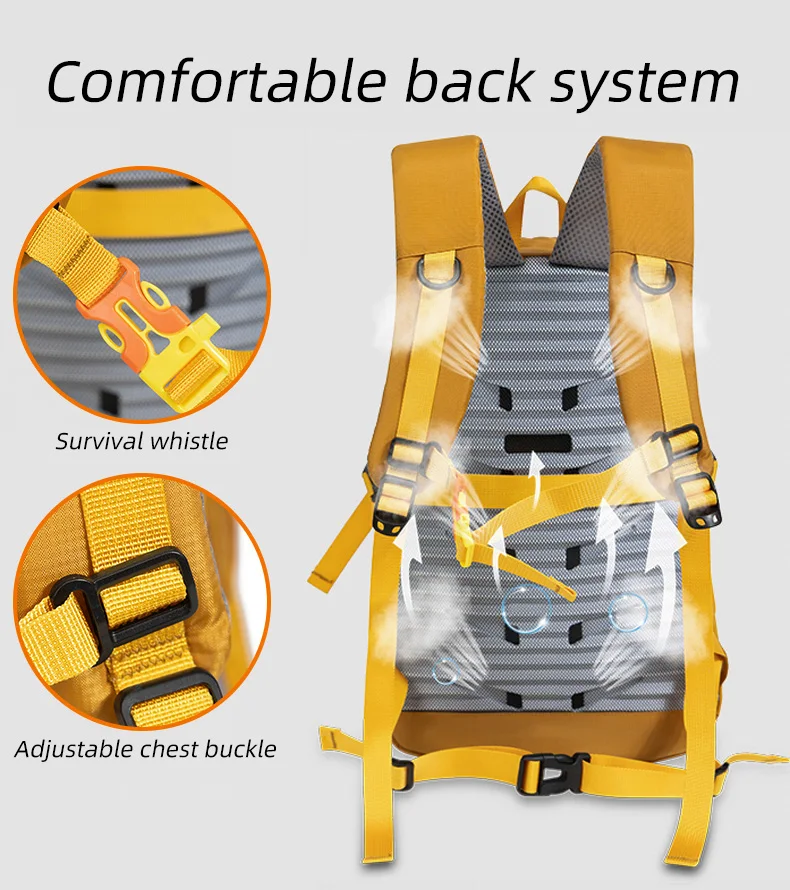 4.Cierre en el pecho: la mochila se sujeta al pecho, lo que facilita su transporte al aire libre.