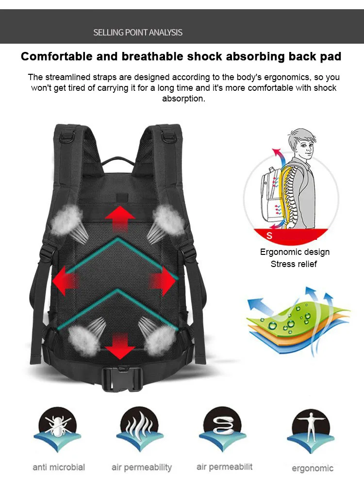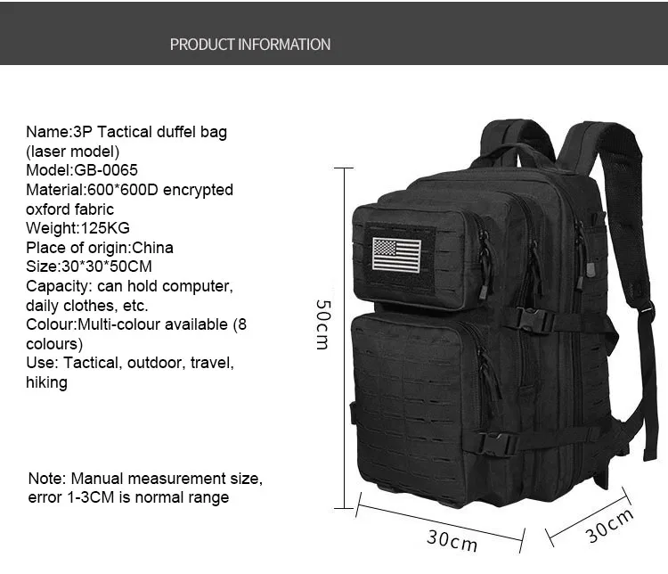 Mochilas deportivas de camuflaje para hombre, sistema MOLLE, 3P, 45l, para exteriores