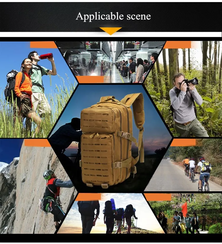 Mochilas tácticas de 35L para hombres, bolsas de viaje, paquete Molle EDC 3P al aire libre para senderismo, Camping, bolsa de caza, paquete MOLLE de pesca