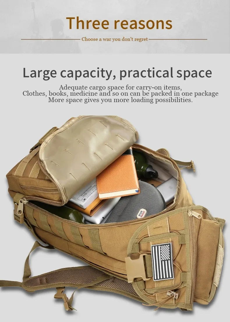 Mochilas tácticas de gran capacidad para hombre, 35L, supervivencia, senderismo, bolsa para ordenador al aire libre, mochila de día, bolsa deportiva informal