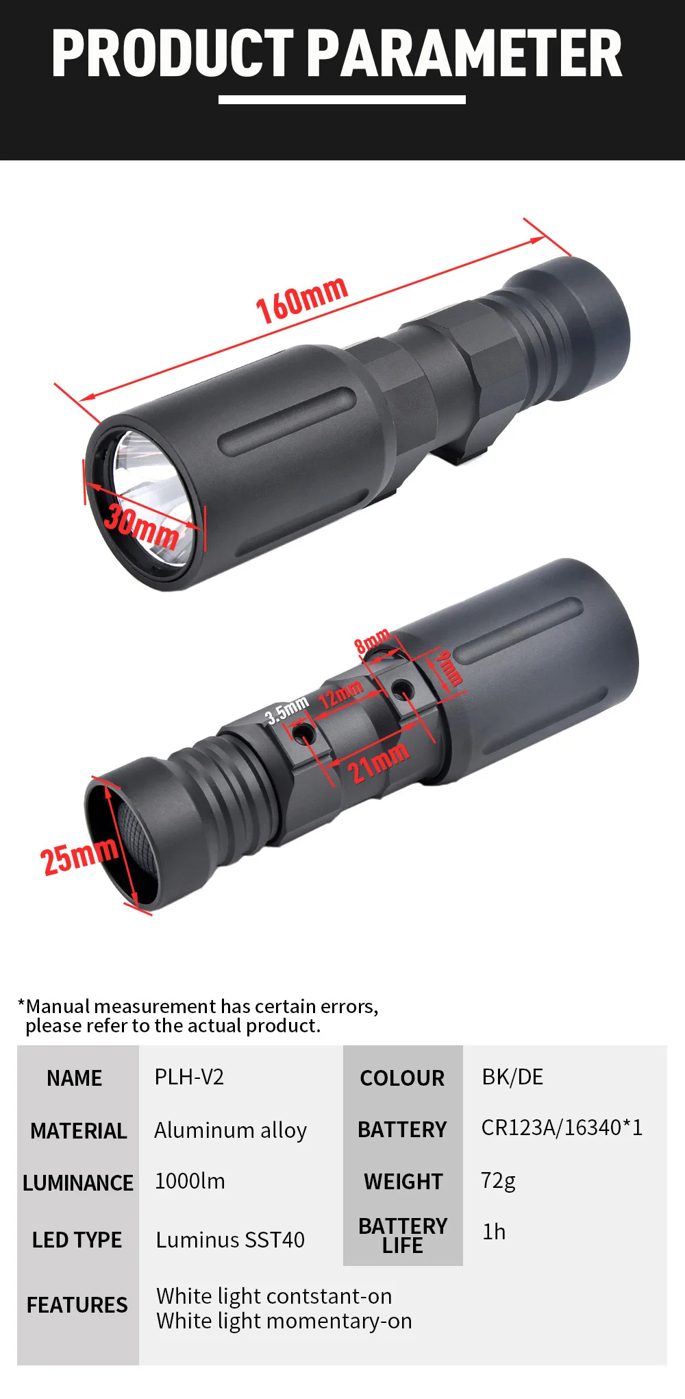 MOD PLH V2 linterna táctica Scout luz de alto Lumen con interruptor de foco de botón de montaje caliente Airsoft AR15 Accesorios