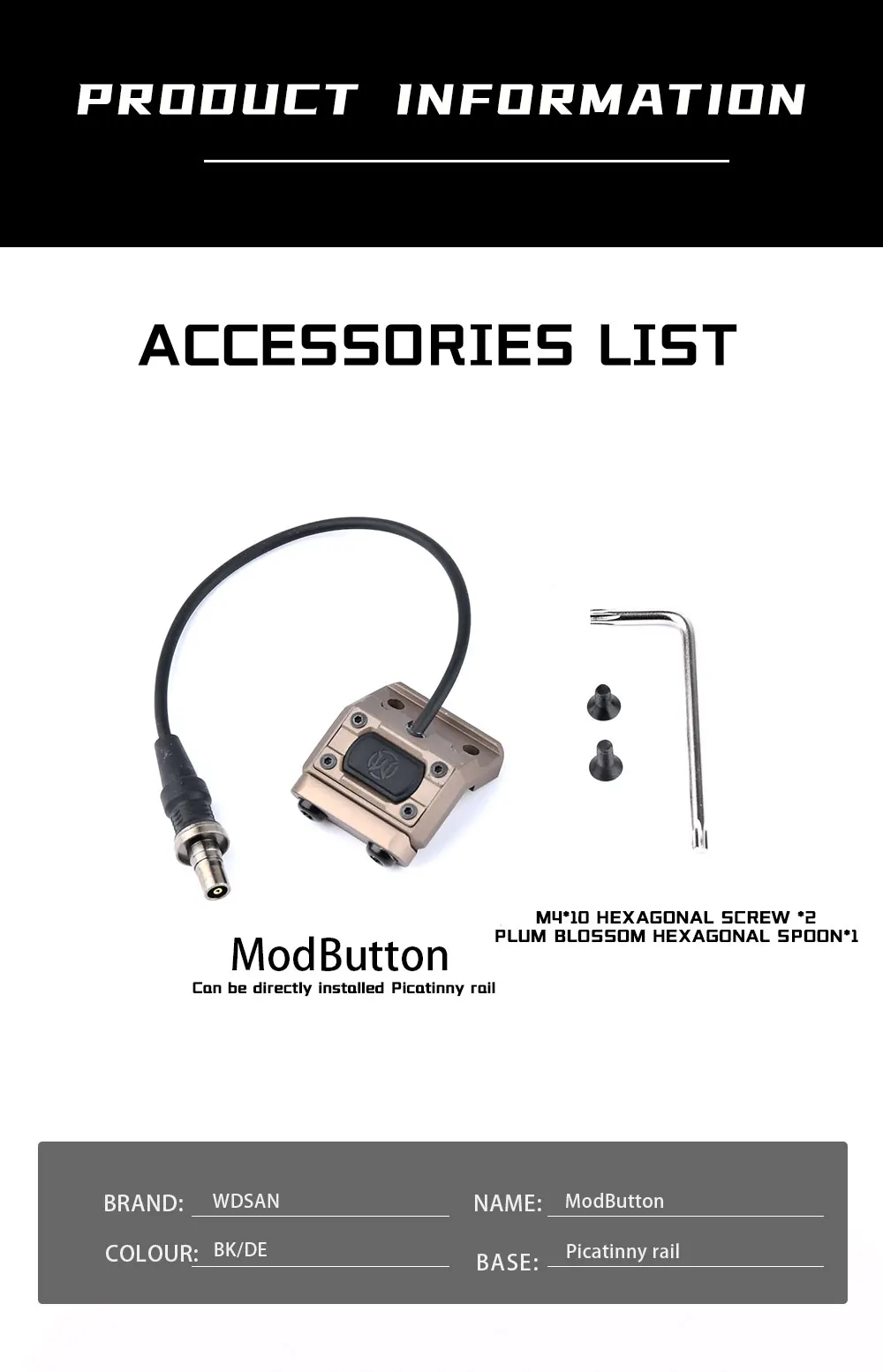 ModButton táctico botón caliente Surefir M300 M600 linterna interruptor remoto de presión DBAL A2 PEQ NGAL láser Mlok Keymod 20mm Rail