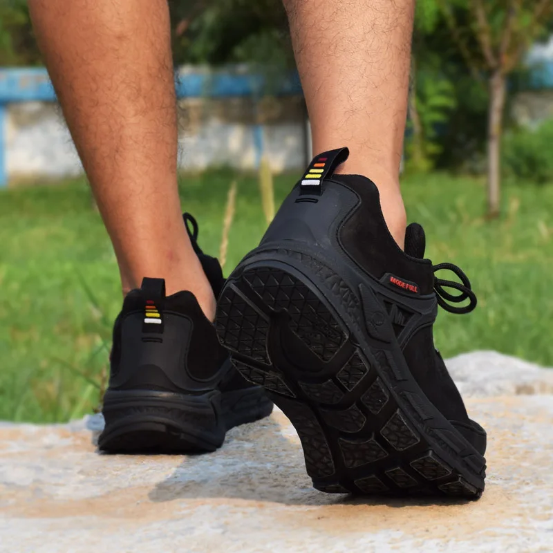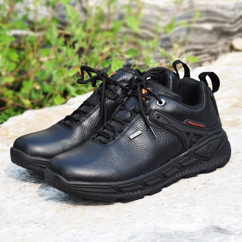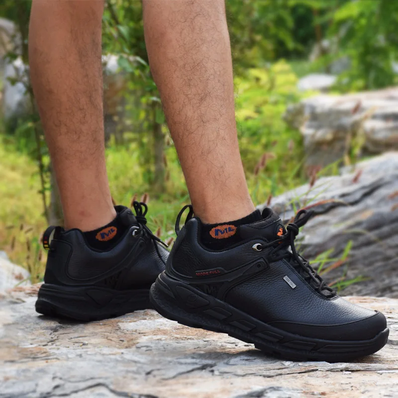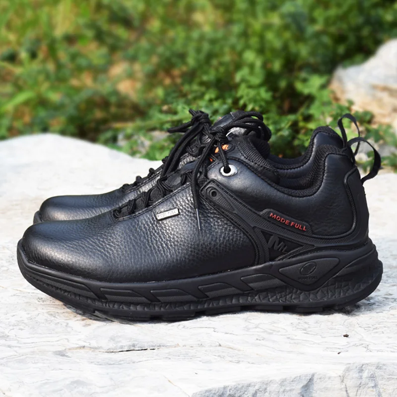 MODE Zapatos de senderismo COMPLETOS para hombre, zapatillas de deporte de cuero de vaca para correr al aire libre, zapatillas de senderismo con cordones, cómodas, ligeras y suaves, zapatillas de tenis informales